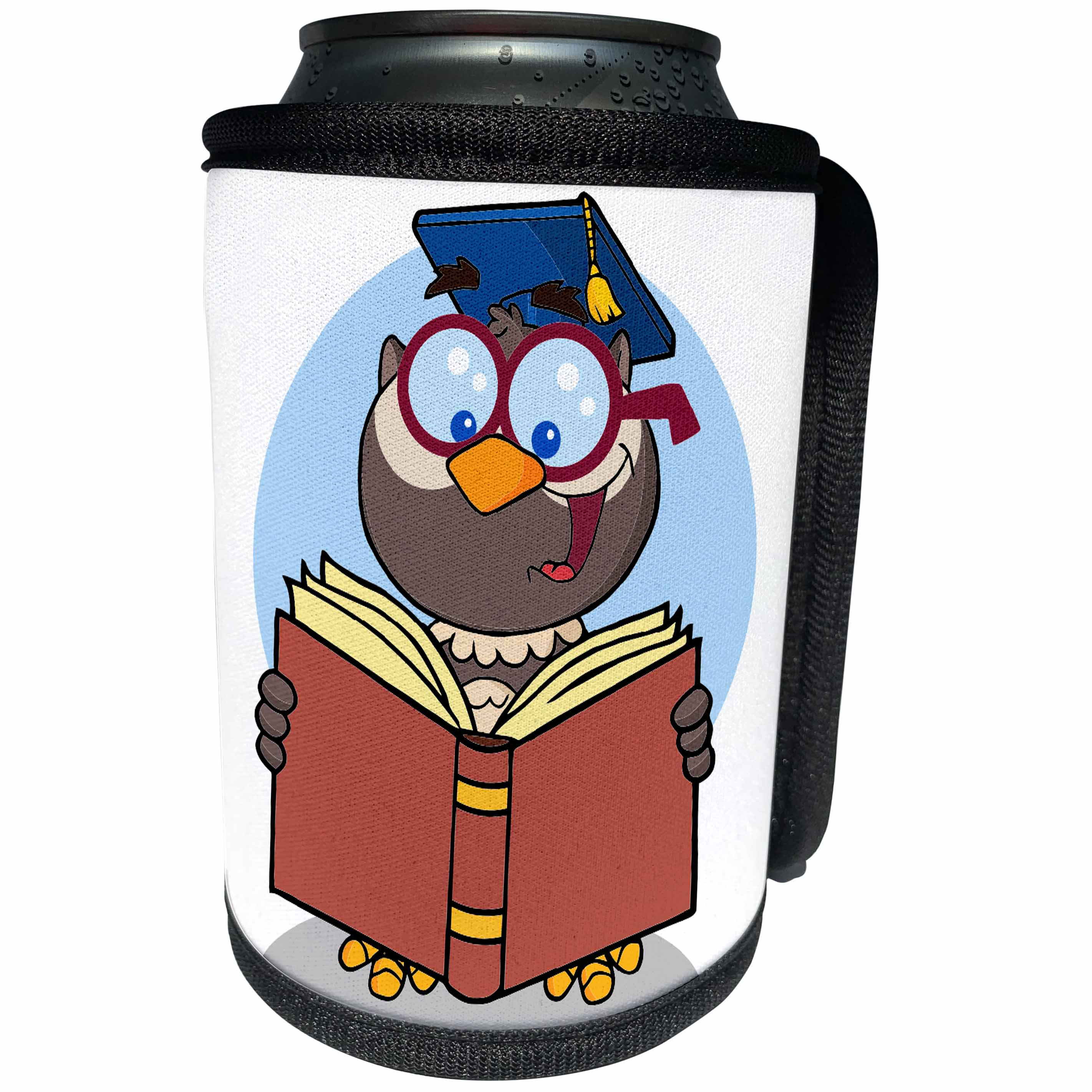 3dRose Dooni Designs More Random Cartoon Designs - Graduate Owl Reading A Book Cartoon - Can Cooler Bottle Wrap (cc_118730)