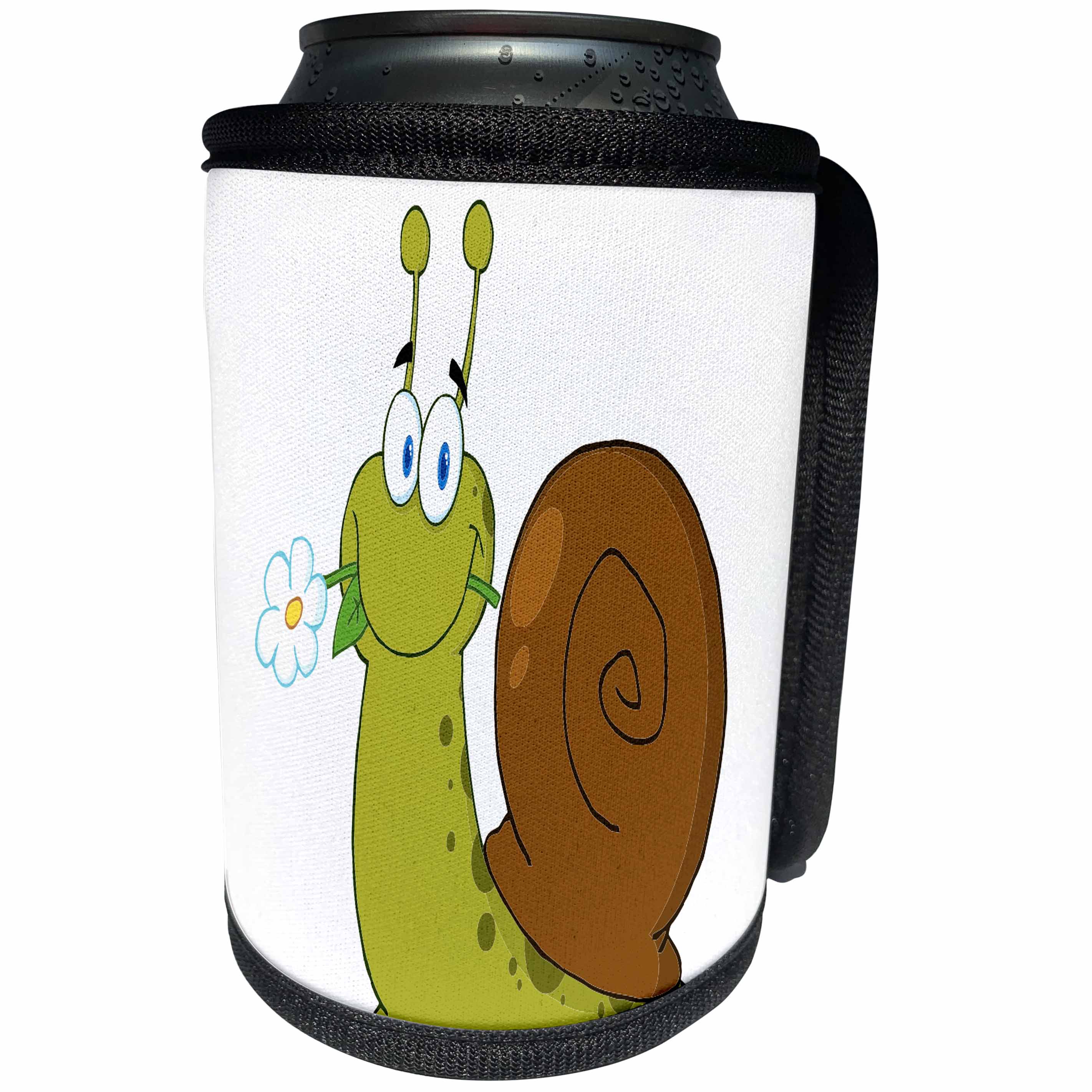 3dRose Dooni Designs More Random Cartoon Designs - Happy Cartoon Snail With Flower - Can Cooler Bottle Wrap (cc_118740)