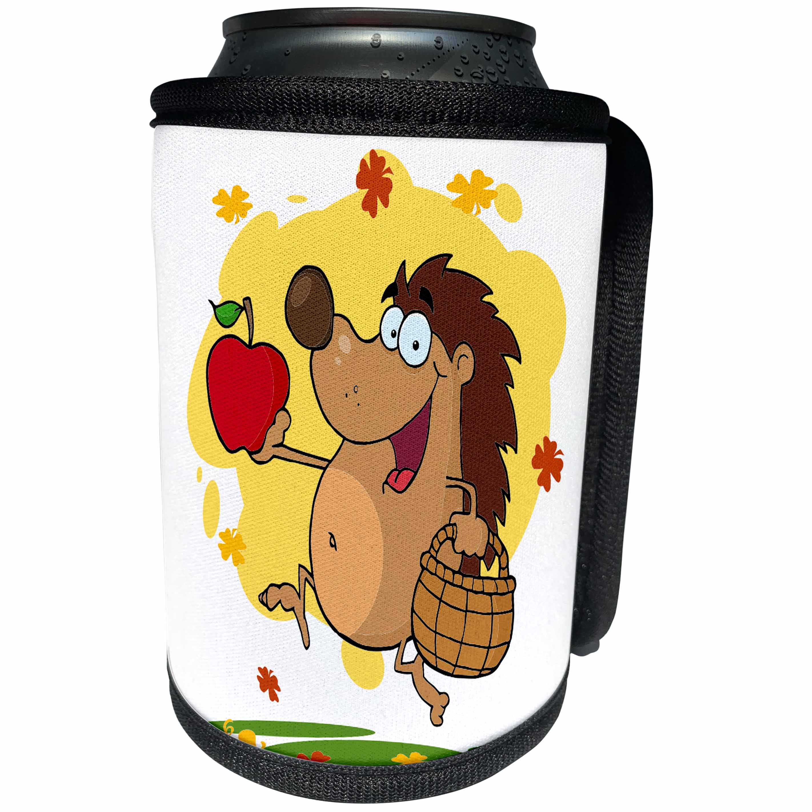 3dRose Dooni Designs More Random Cartoon Designs - Happy Cute Hedgehog Apple Picking - Can Cooler Bottle Wrap (cc_118747)