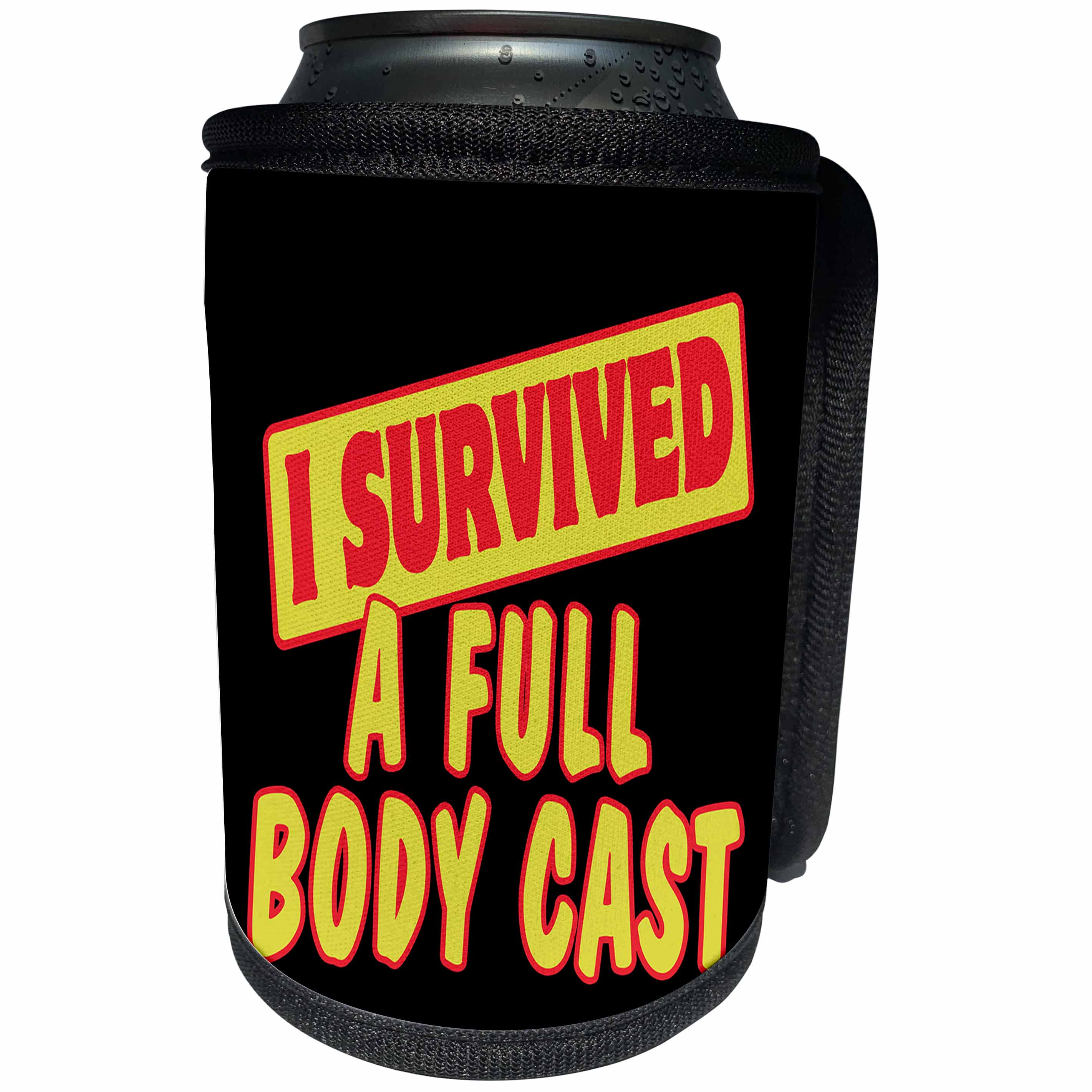 3dRose Dooni Designs Survive Sayings - I Survived A Full Body Cast Survial Pride And Humor Design - Can Cooler Bottle Wrap (cc_117608)