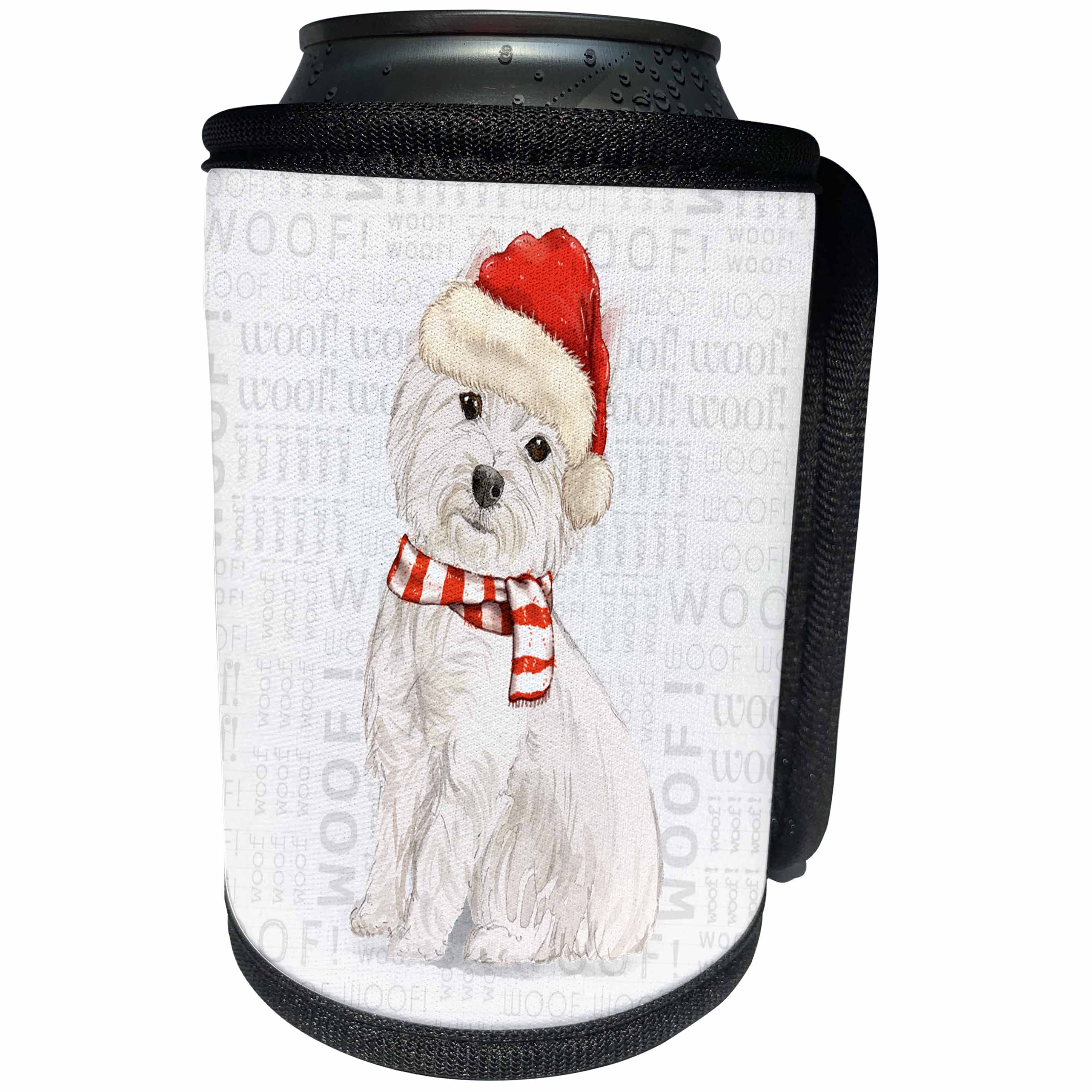 3dRose Doreen Erhardt Christmas Collection - Adorable West Highland White Terrier Santa Hat for Christmas - Can Cooler Bottle Wrap (cc_299912)