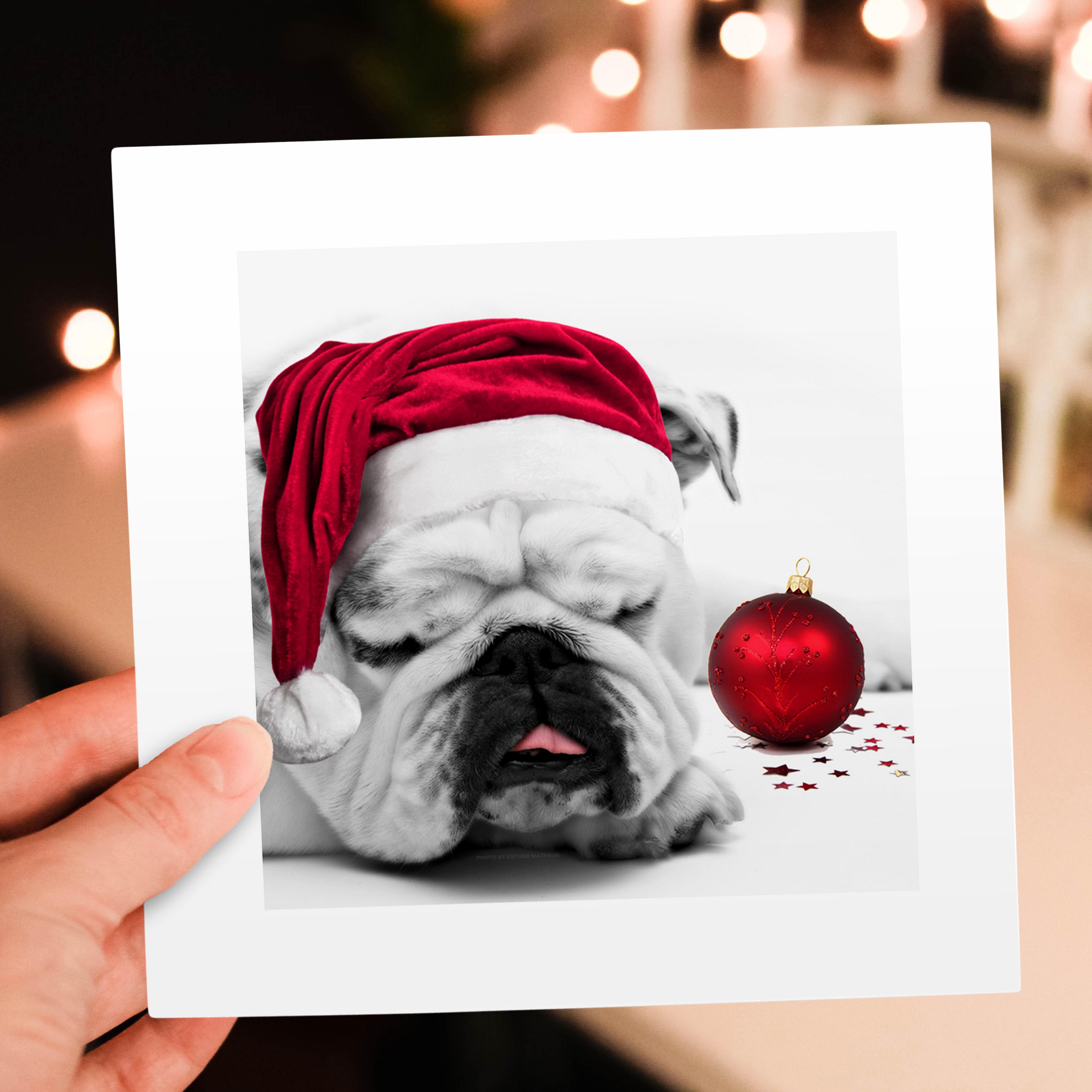 3dRose Doreen Erhardt Christmas Collection - Sleeping Bulldog in a Santa Hat Christmas Card photo courtesy of Esther Matheus - Greeting Cards (gc_62826)