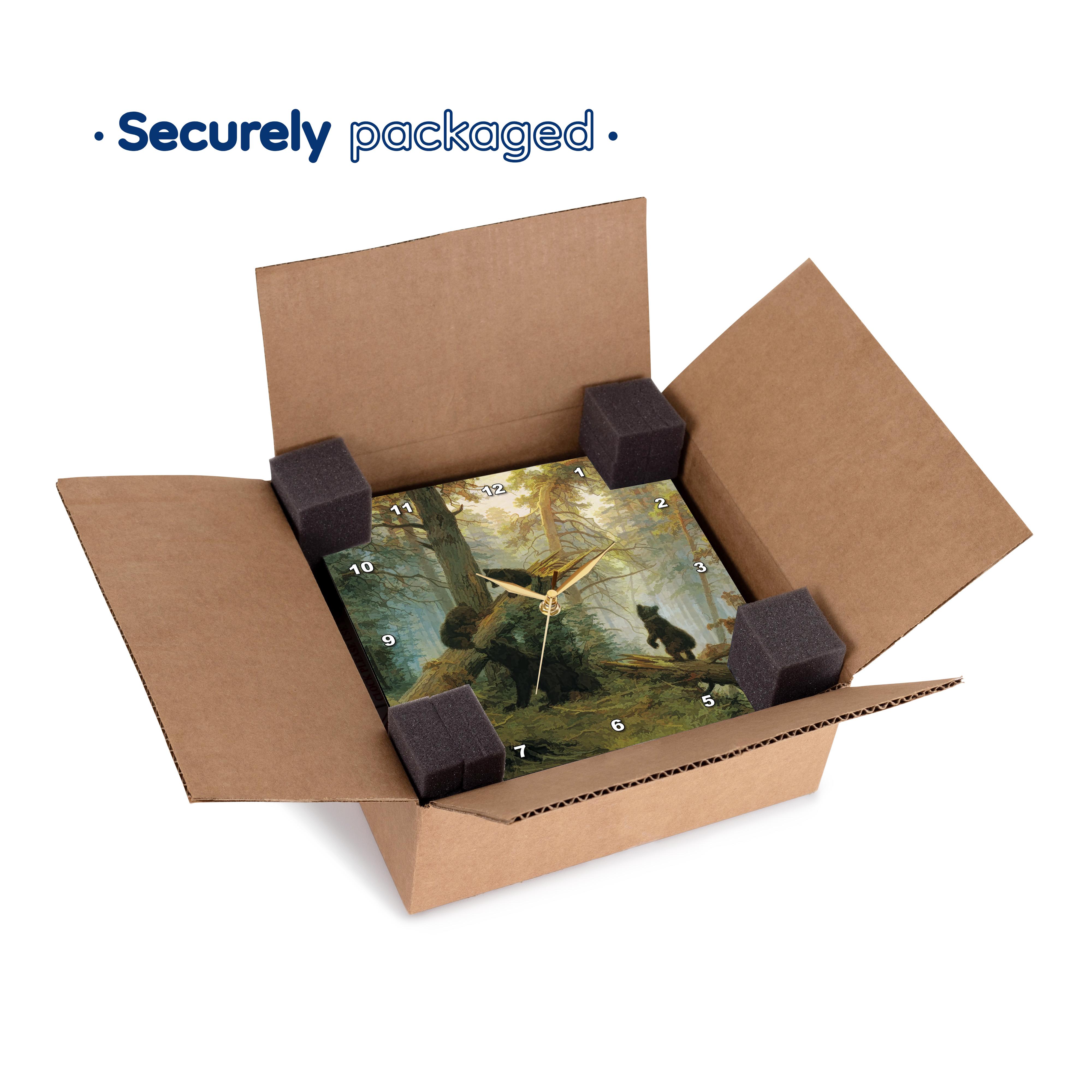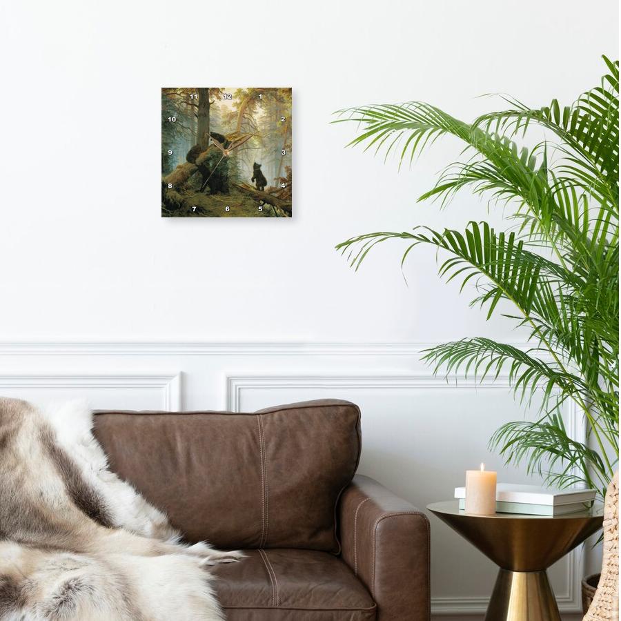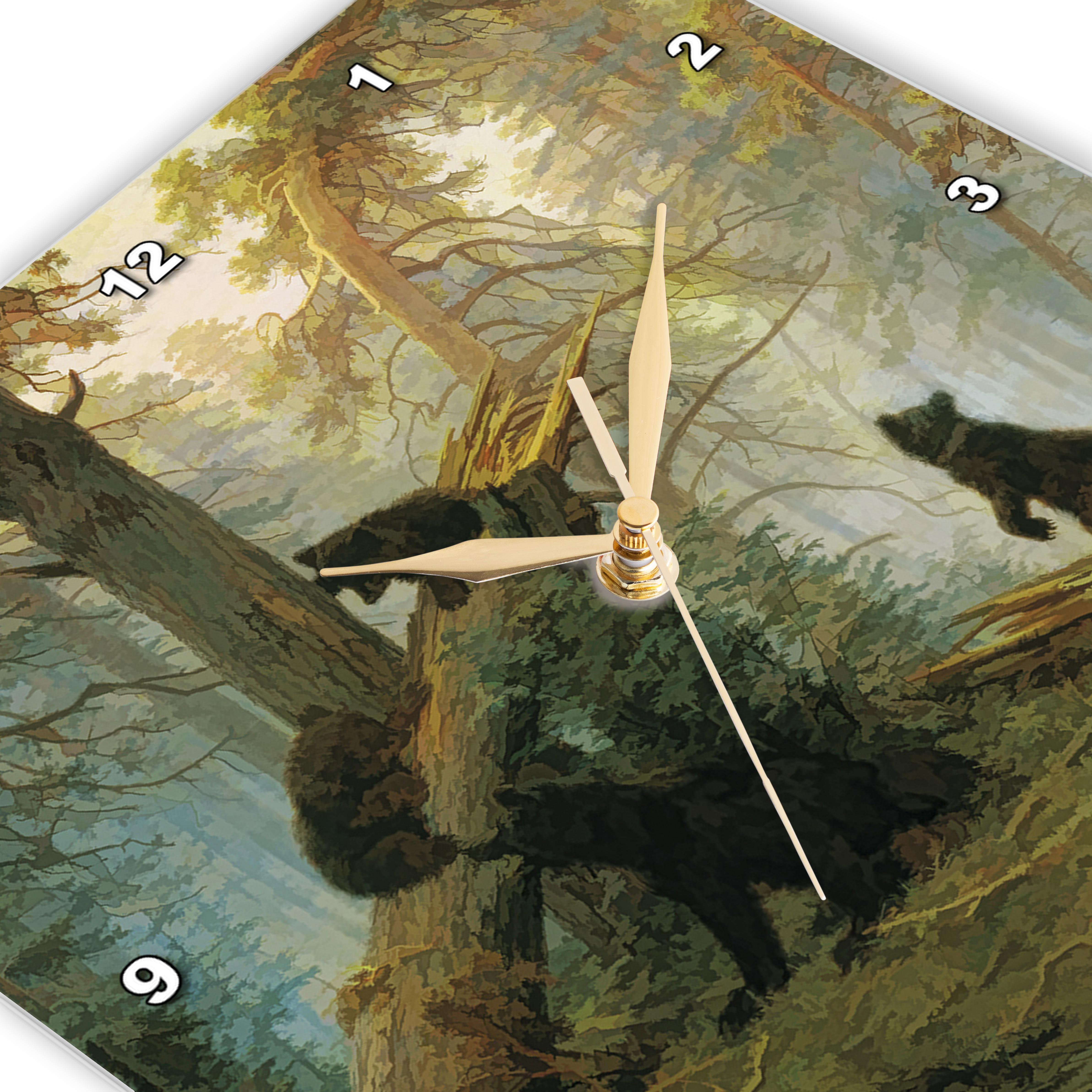 3dRose Doreen Erhardt Vintage Collection - Vintage 1889 Bear Painting by Ivan Shishkin Morning in a Pine Forest - Wall Clocks (DPP_52267)