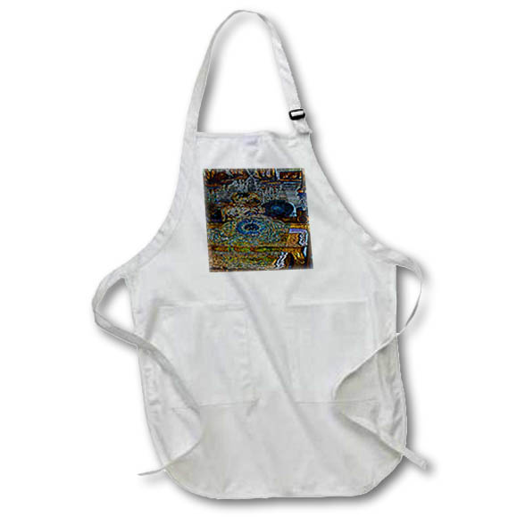 BY THE BAY Apron is made of a 65/35 poly/cotton blend. Whether it is put to use in a restaurant or at home, this apron will always help to keep you clean. Full length features adjustable neck strap. Medium length features non-adjustable neck strap that fits over your head. Both sizes also tie around the waist.