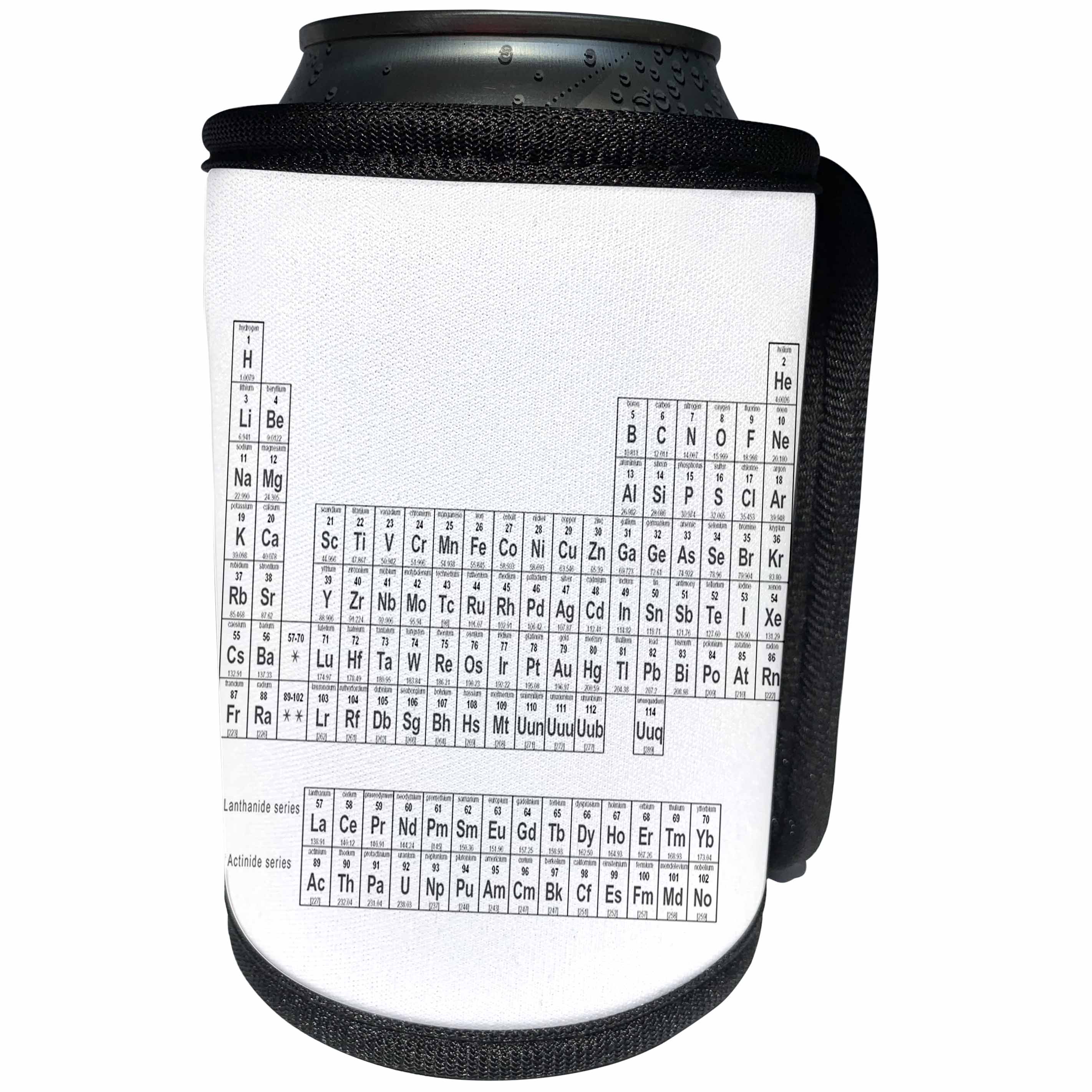 3dRose EvaDane - Chemistry - Periodic Table of Elements, Black and White - Can Cooler Bottle Wrap (cc_123989)
