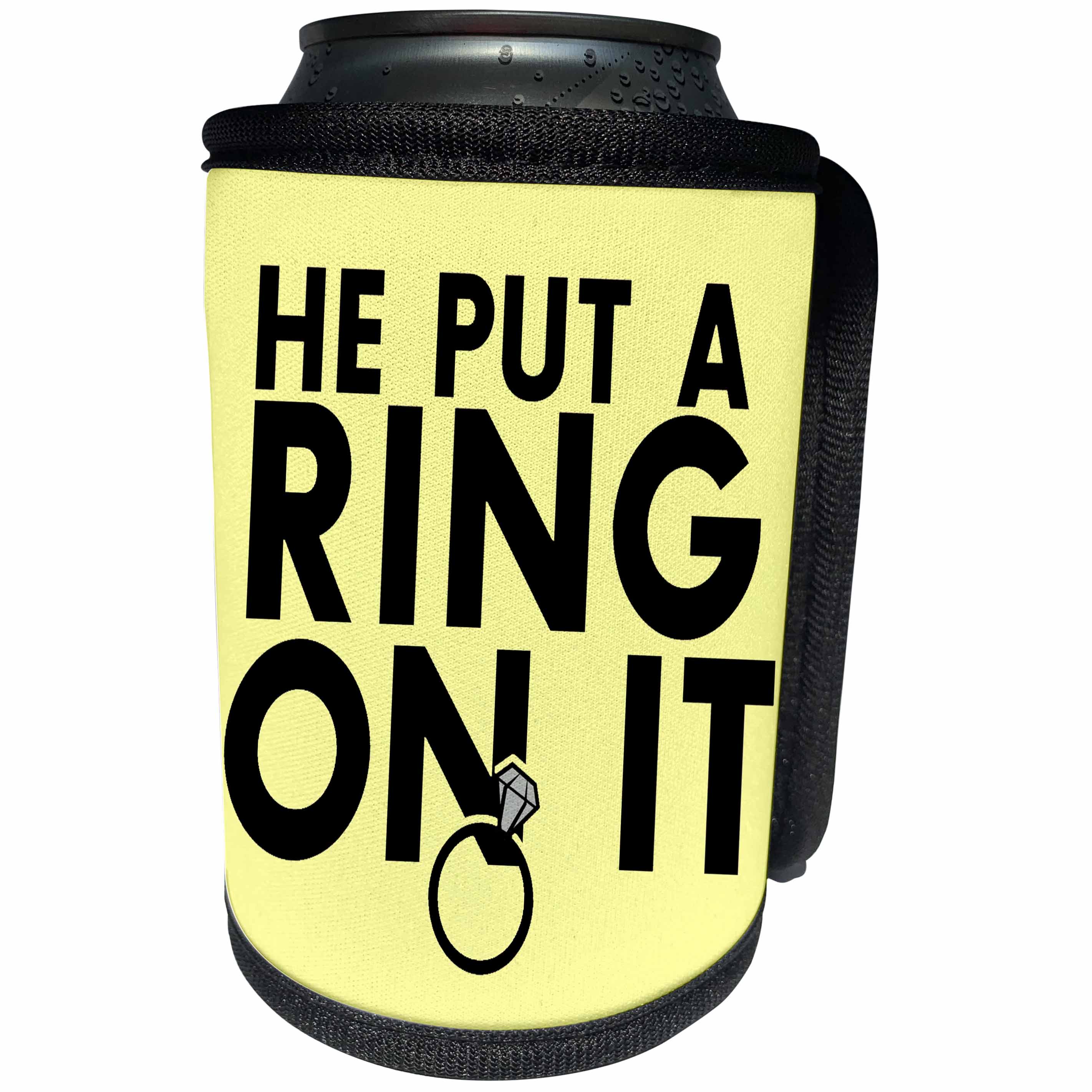 3dRose EvaDane - Funny Quotes - He put a ring on it. Yellow. - Can Cooler Bottle Wrap (cc_194350)