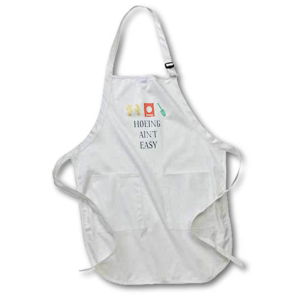 Hoeing Aint Easy Apron is made of a 65/35 poly/cotton blend. Whether it is put to use in a restaurant or at home, this apron will always help to keep you clean. Full length features adjustable neck strap. Medium length features non-adjustable neck strap that fits over your head. Both sizes also tie around the waist.