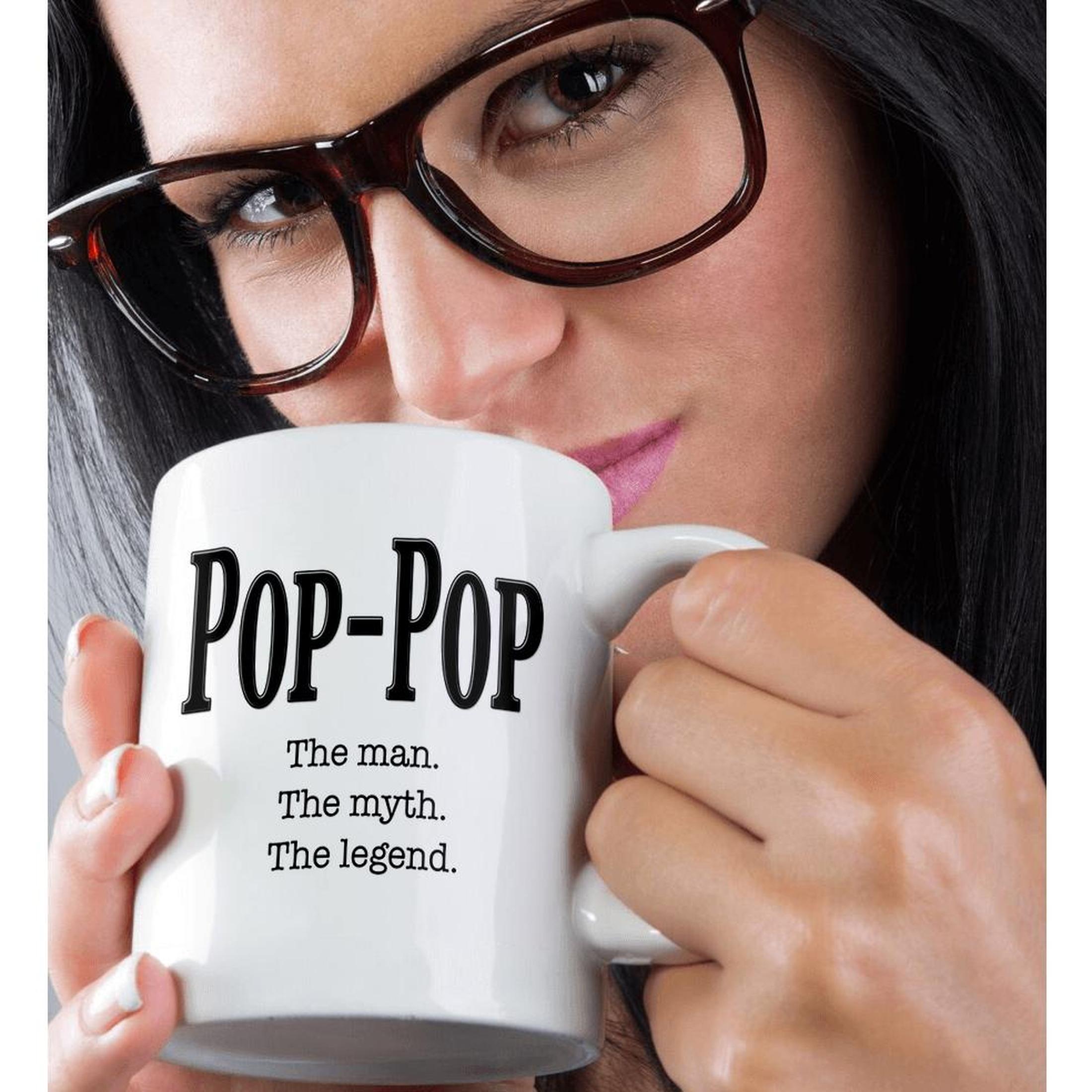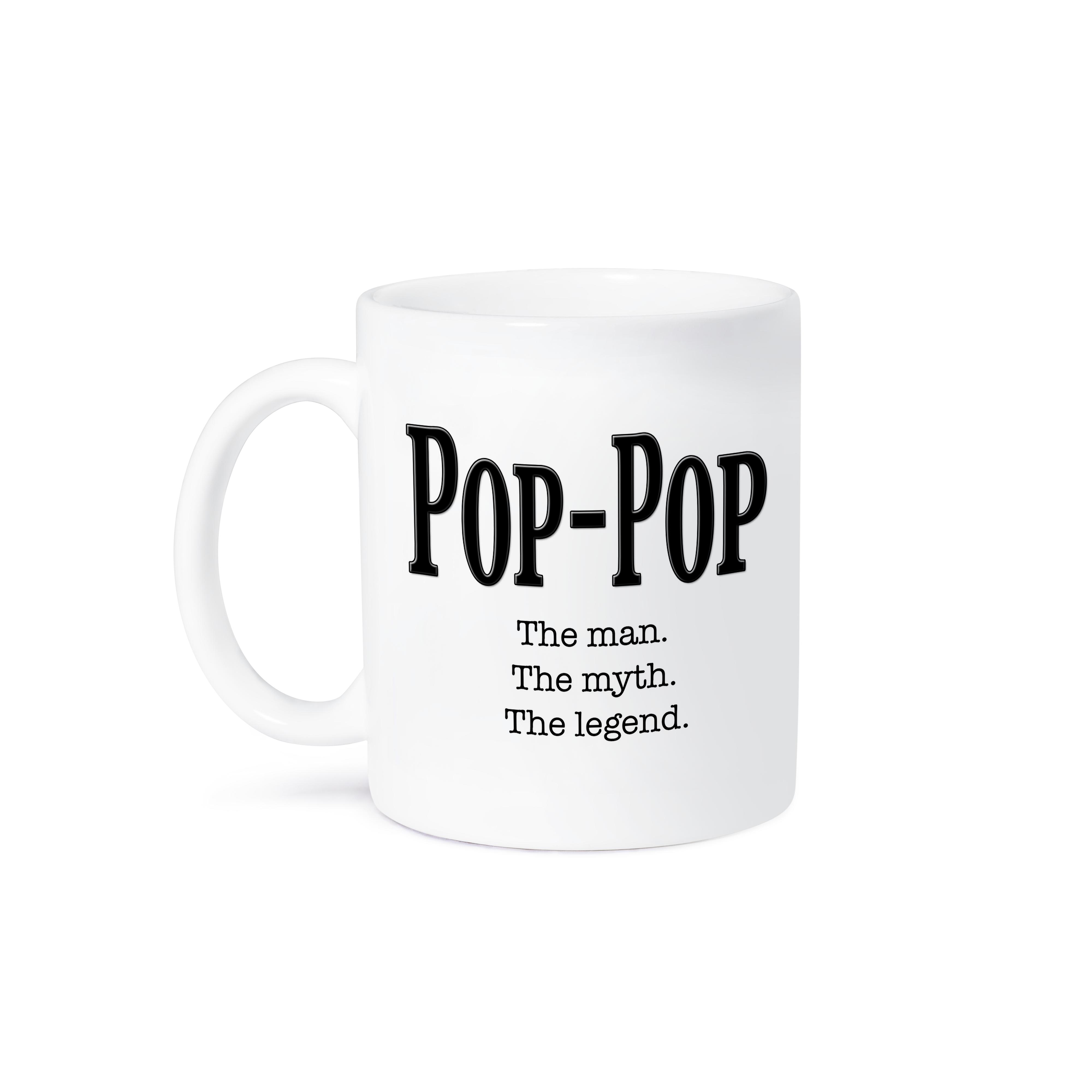 Pop-Pop the man the myth the legend Mug is available in both 11 oz and 15 oz. Why drink out of an ordinary mug when a custom printed mug is so much cooler? This ceramic mug is lead free, microwave safe. Image is printed on both sides. Hand washing is recommended.