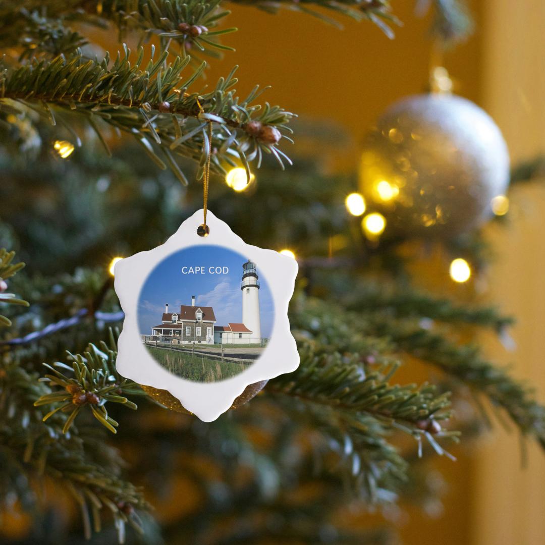 3dRose Florene Architecture - Lighthouse on Cape Cod in Massachusetts - Ornaments (ORN_80839)