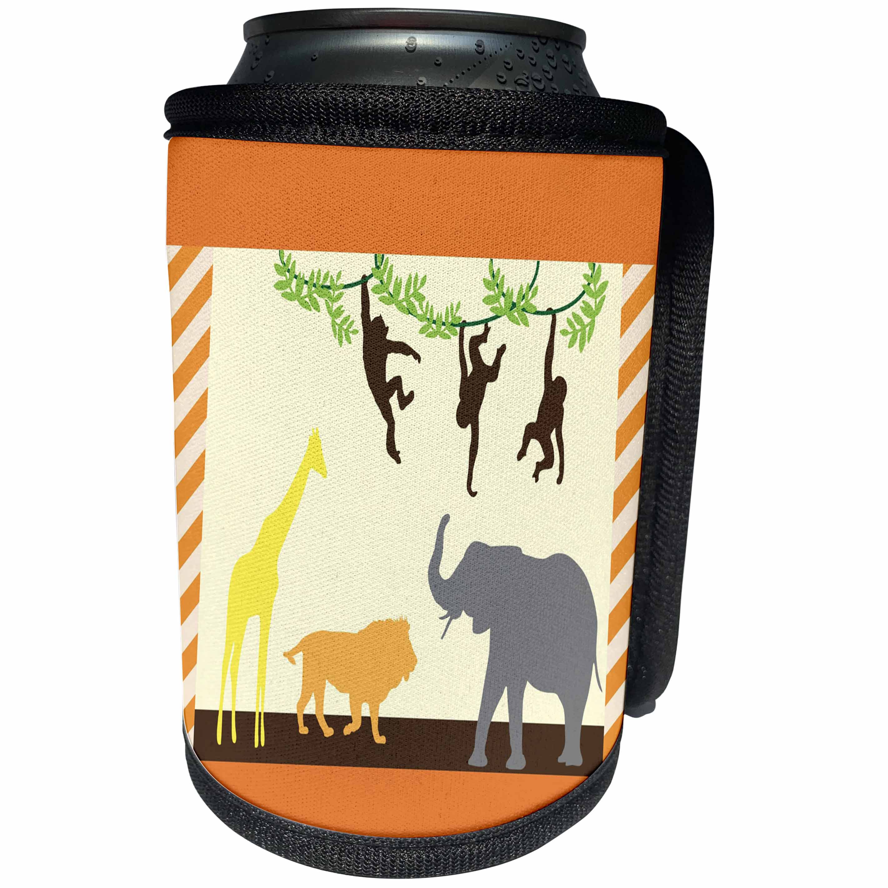 3dRose Florene - Childrens Art IV - Print of Jungle Animals With Orange Stripes Border - Can Cooler Bottle Wrap (cc_212662)