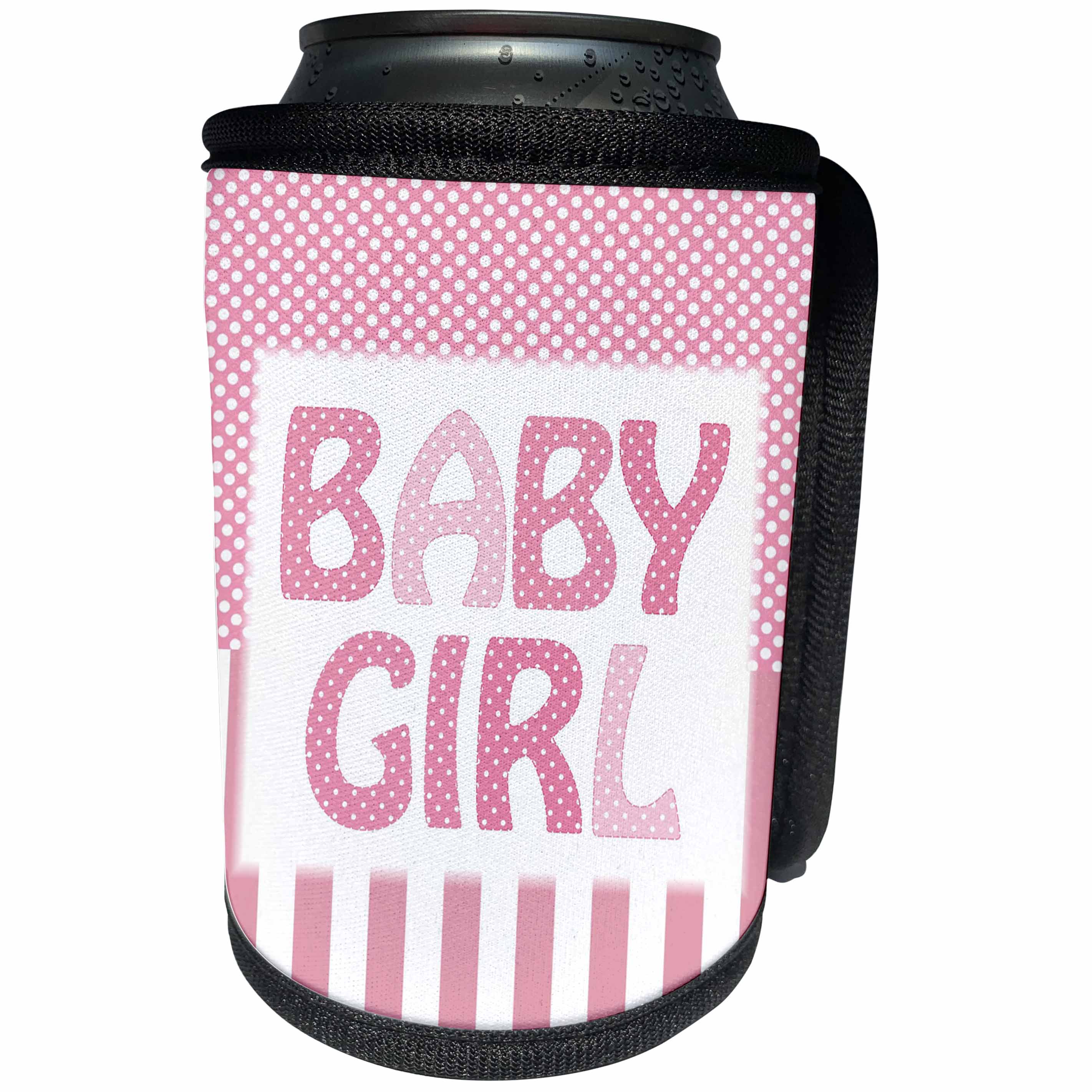 3dRose Florene - Childrens Art V - Image of A Baby Girl Sign With Pink Stripes And Dots - Can Cooler Bottle Wrap (cc_233039)