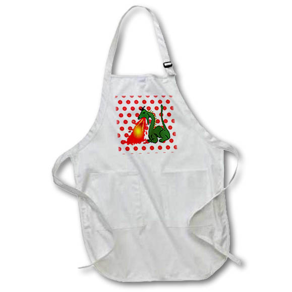3dRose Florene - Childrens Art V - Print of Fire Breathe Dragon On Red Dots - Aprons (apr_218986)