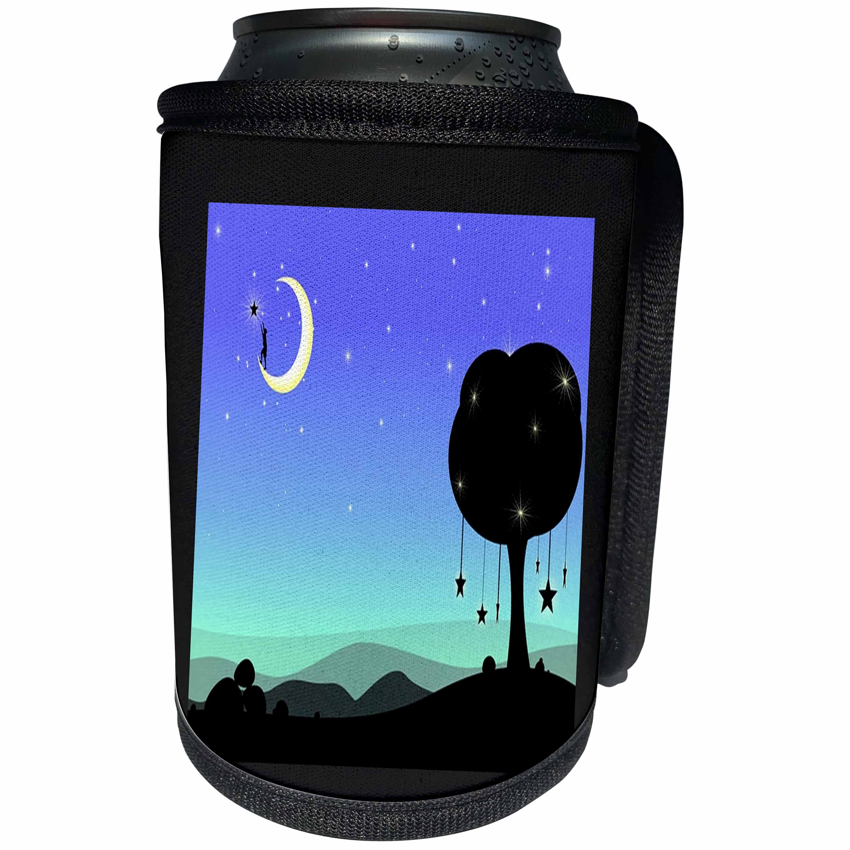 3dRose Florene - Fairies And Fantasy - Print of Boy On Moon Reaching For A Star - Can Cooler Bottle Wrap (cc_204062)