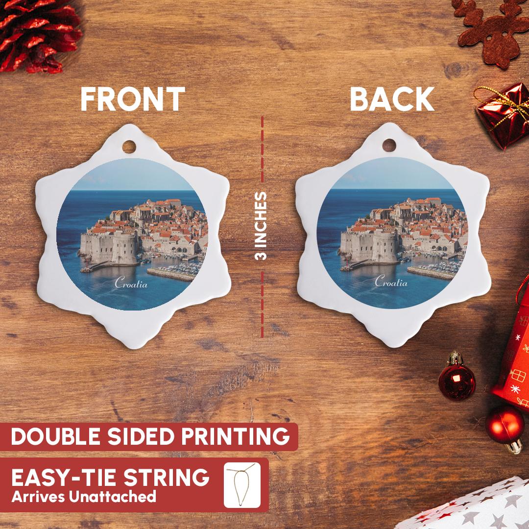 3dRose Florene Worlds Exotic Spots - Image of Croatia Seaside Ancient Buildings and Marina - Ornaments (ORN_237484)