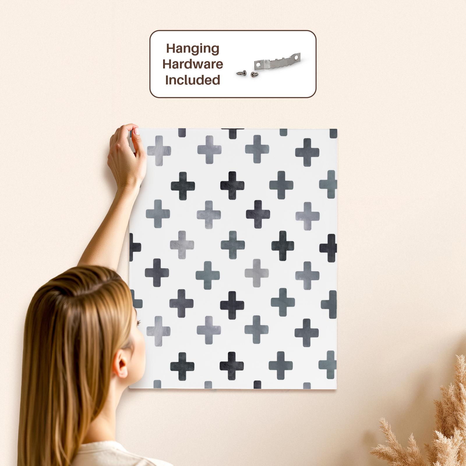 3dRose Grey plus pattern - gray Swiss cross design - pluses... - Museum Grade Canvas Wrap (cw_183926)