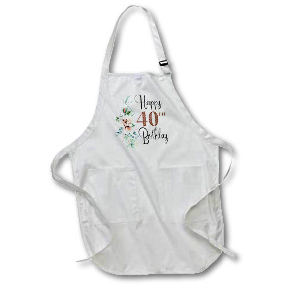Happy 40th Birthday With Pink Blush Flowers Apron is made of a 65/35 poly/cotton blend. Whether it is put to use in a restaurant or at home, this apron will always help to keep you clean. Full length features adjustable neck strap. Medium length features non-adjustable neck strap that fits over your head. Both sizes also tie around the waist.