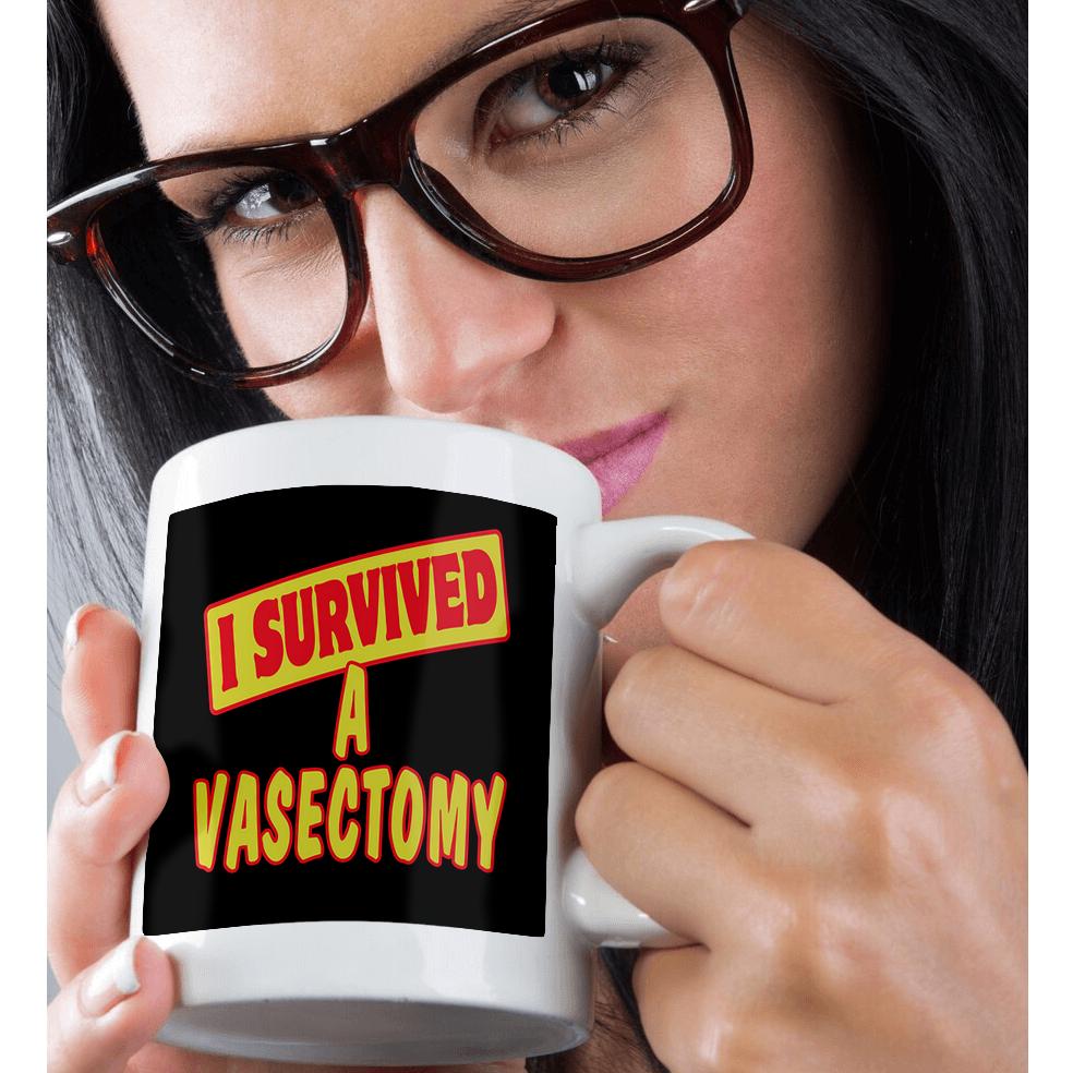 I Survived A Vasectomy Survial Pride And Humor Design Mug is available in both 11 oz and 15 oz. Why drink out of an ordinary mug when a custom printed mug is so much cooler? This ceramic mug is lead free, microwave safe. Image is printed on both sides. Hand washing is recommended.