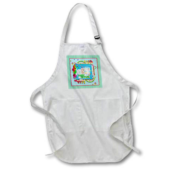 Apron - Image of Bear, Rhino, Zebra Party 5th Birthday, Cake, Stars, Colorful Birthday Design