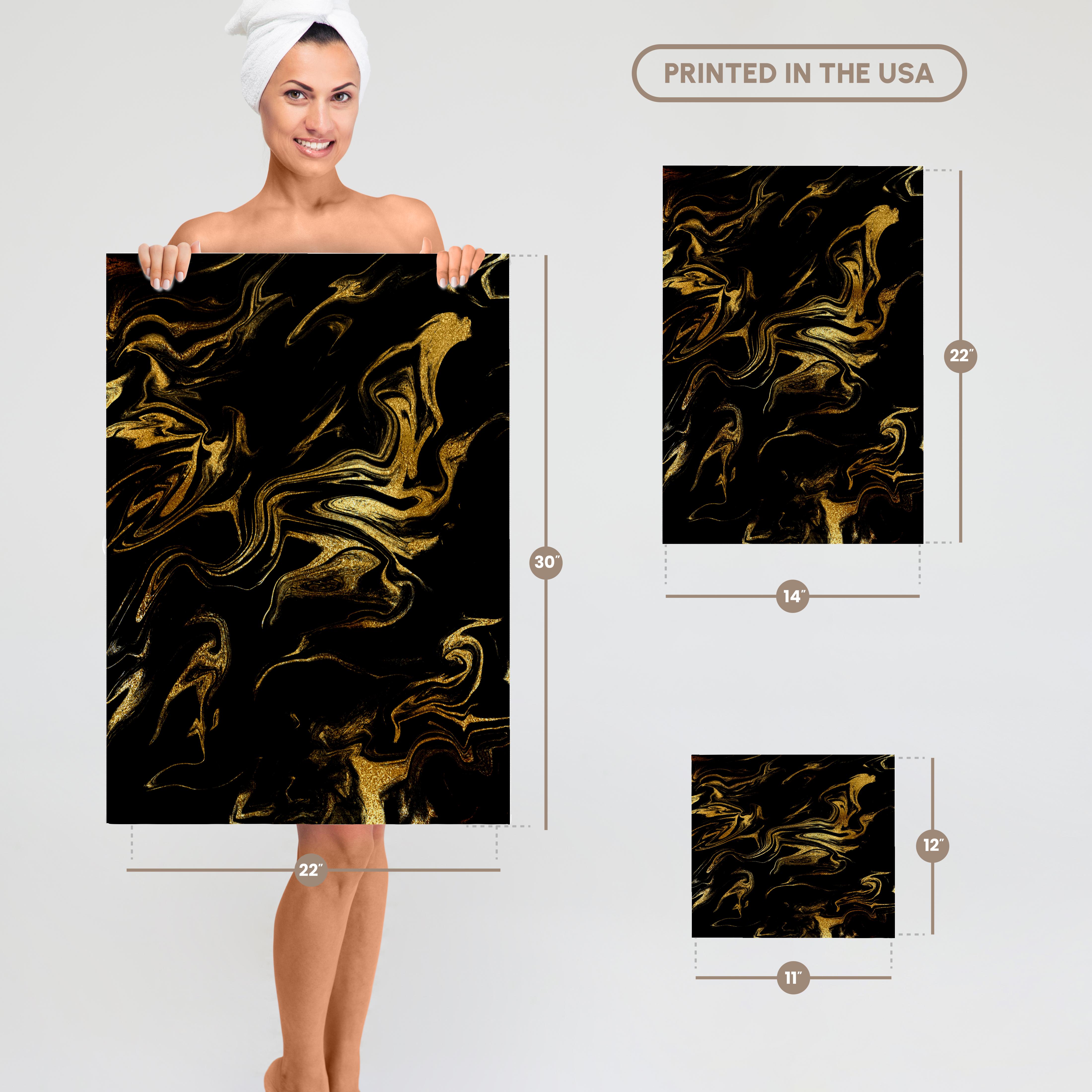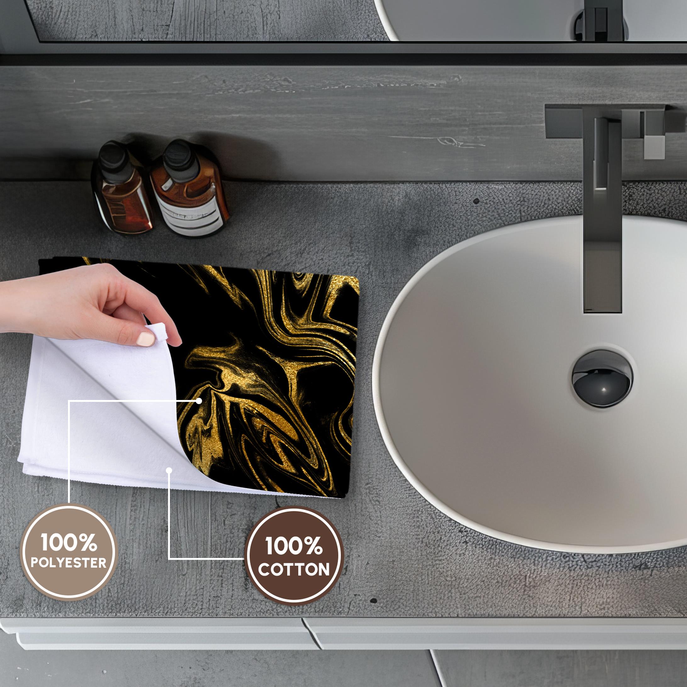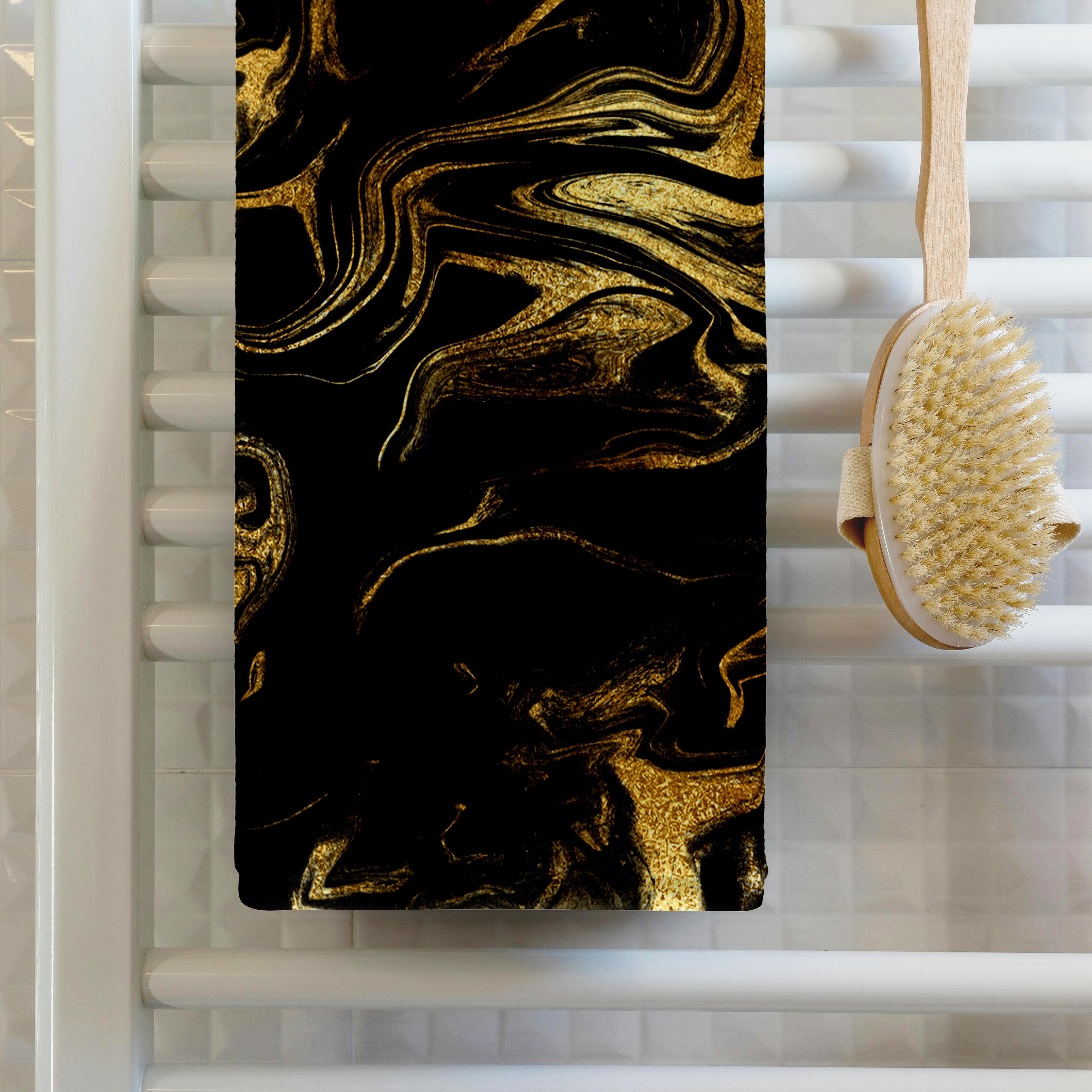 3dRose Image of Chic Trendy Gold Glitter Veins on Black Marble Agate Gemstone - Towels (twl-275232)