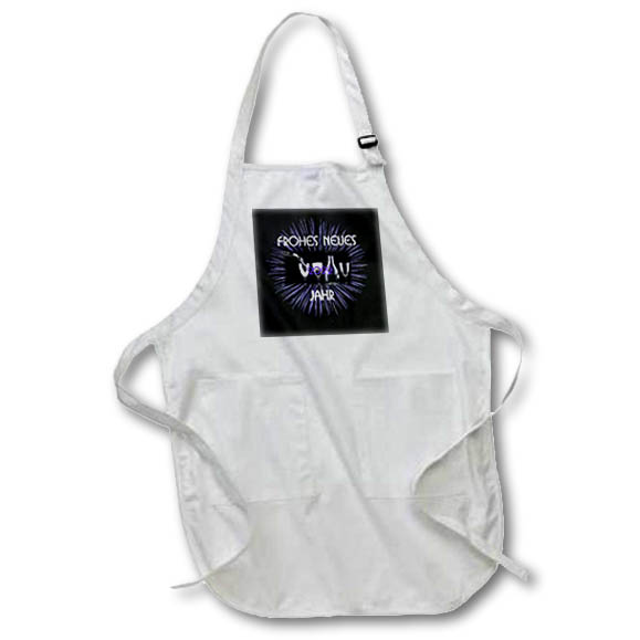 Apron - Image of German Text In Black And White Champagne Purple Fireworks lens Art by Florene - Happy New Year