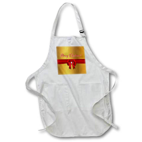 Apron - Image of Merry Christmas, Red Bow with Jewel on Gold Christmas Design