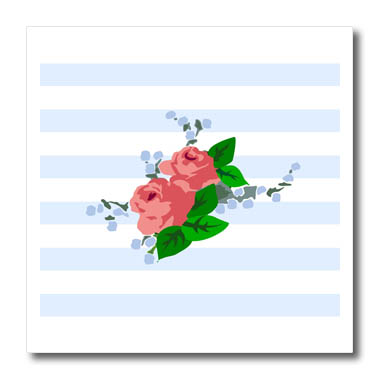 3dRose InspirationzStore Flower Patterns - Shabby Chic Pink Roses on Nautical Pastel Blue and White Sailor Stripes - French Stripe Pattern - Iron on Heat Transfers (ht_57523)
