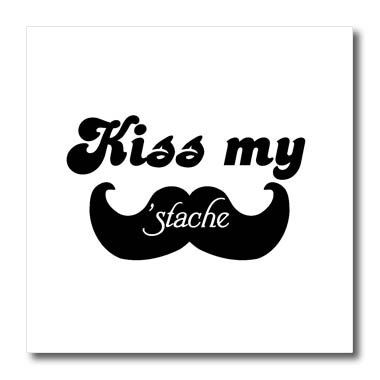 3dRose InspirationzStore Mustache Collection - Funny Kiss My Stache Mustache Humor - Black and White Moustache Fun Wordplay Pun Joke - Iron on Heat Transfers (ht_76618)