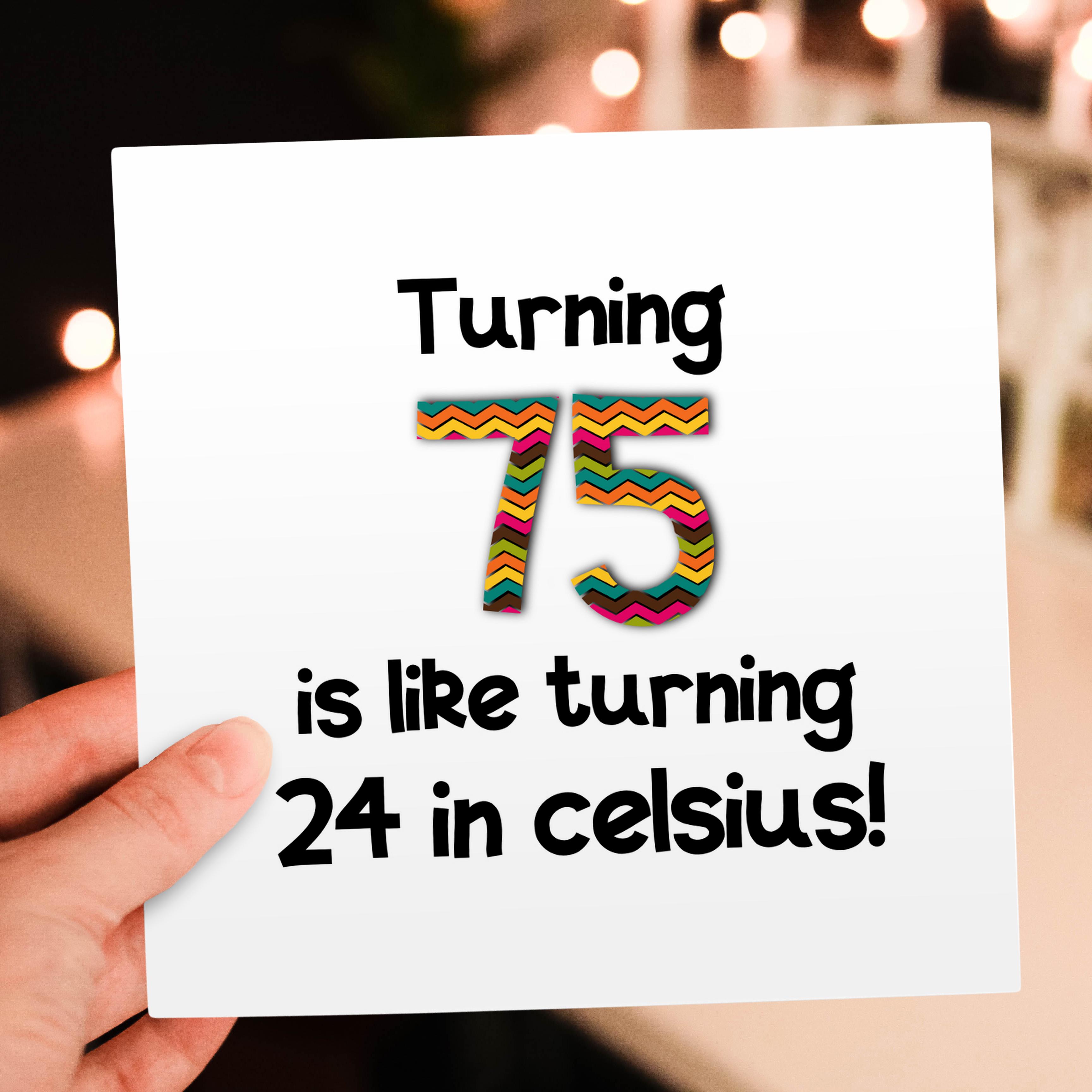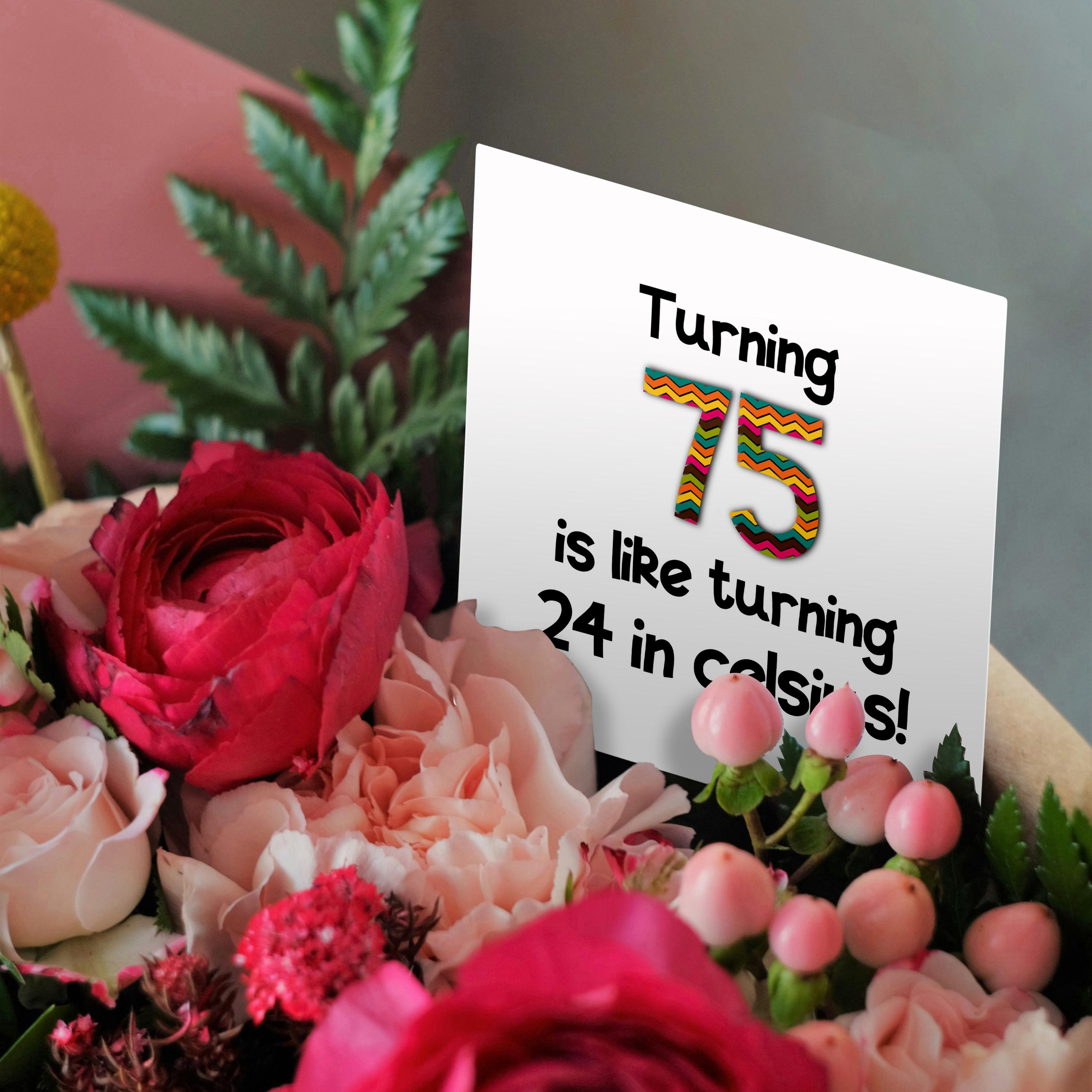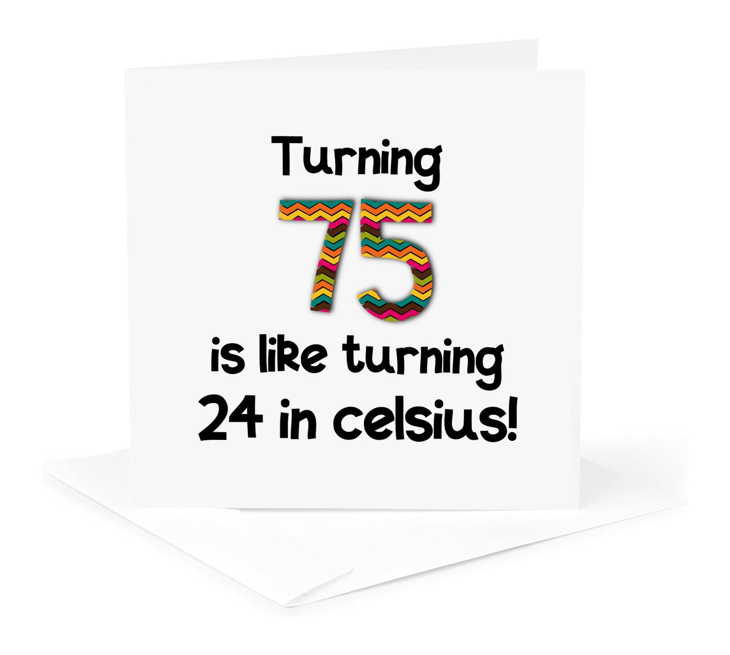 3dRose InspirationzStore Occasions - Turning 75 is like turning 24 in celsius - humorous 75th birthday gift - Greeting Cards (gc_184966)