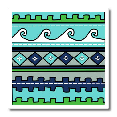 3dRose InspirationzStore Peruvian Pattern - Peru Pattern - Waves Diamonds and Stripes - South American Design - Blue Green Navy Teal Turquoise - Iron on Heat Transfers (ht_58318)