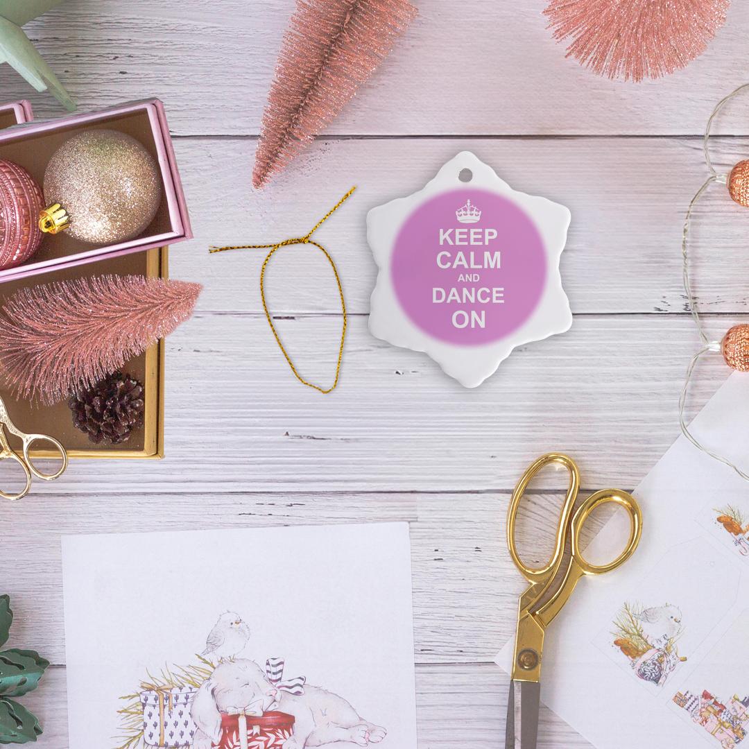 3dRose InspirationzStore Typography - Keep Calm and Dance on - Carry on Dancing - Gifts for Dancers - Girly Pink Fun Funny Humor Humorous - Ornaments (ORN_157705)