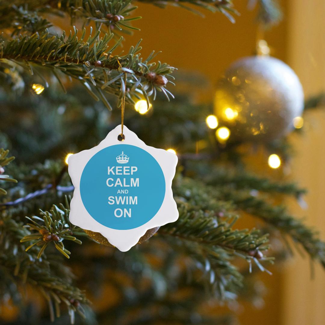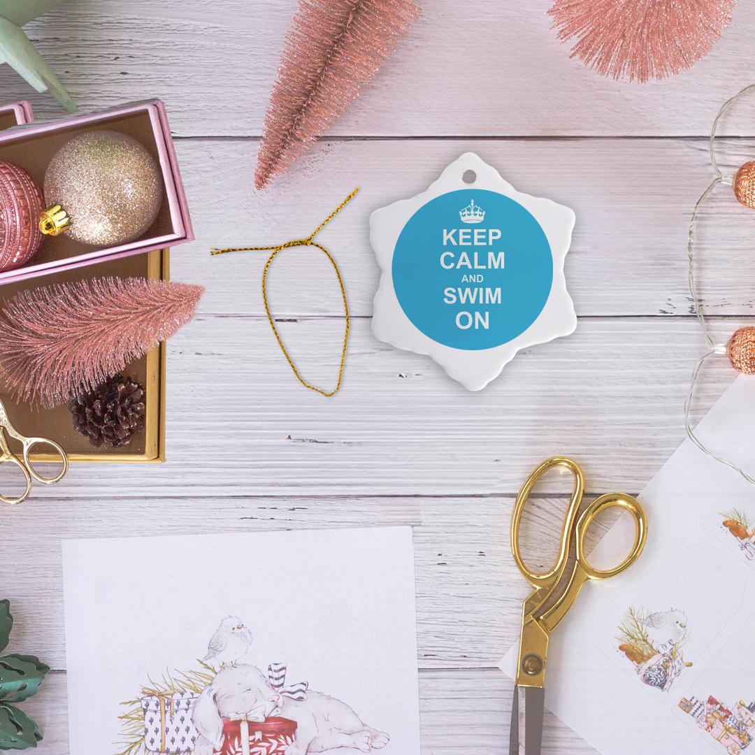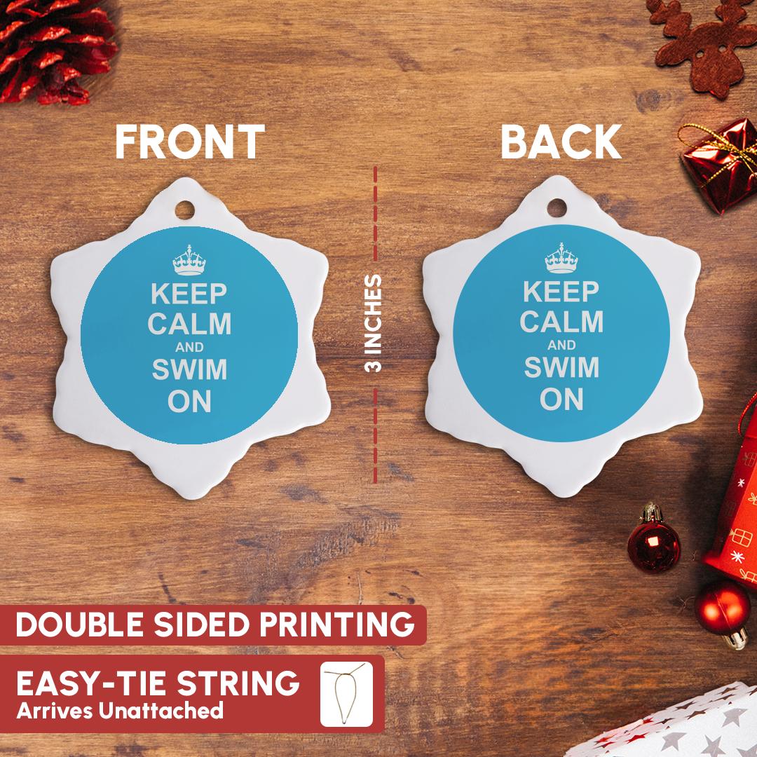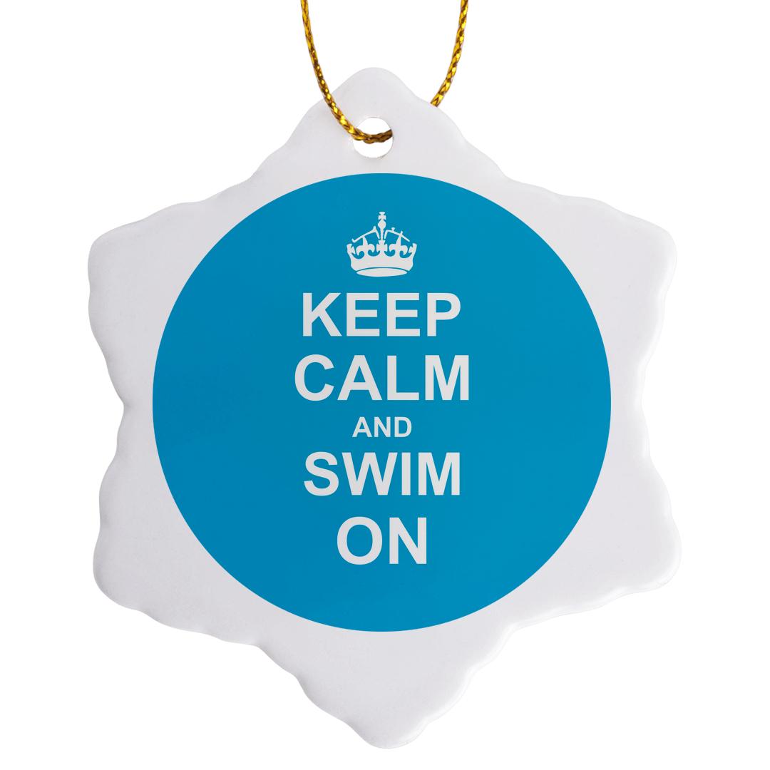3dRose InspirationzStore Typography - Keep Calm and Swim on - Blue Carry on Swimming - Hobby or pro Swimmer Gifts - Pool Fun Funny Humor - Ornaments (ORN_157778)