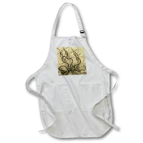 3dRose InspirationzStore Vintage Art - Gigantic colossal octopus sea monster Kraken. Pierre - Aprons (apr_164907)