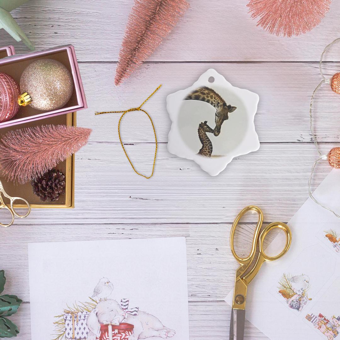 3dRose Jackie Popp Nature N Wildlife Animals - Giraffe Mama and Baby - Ornaments (ORN_22238)
