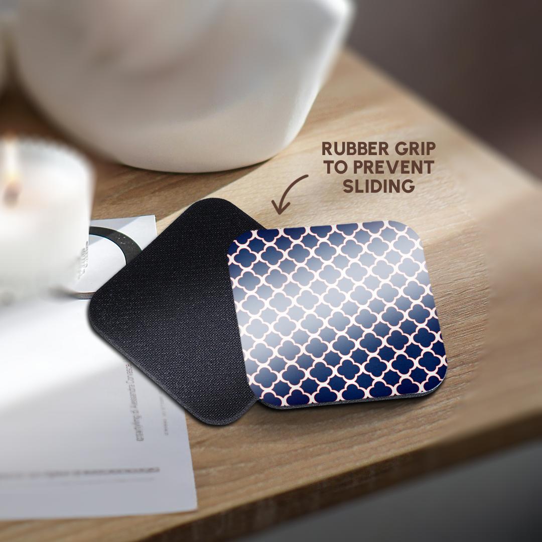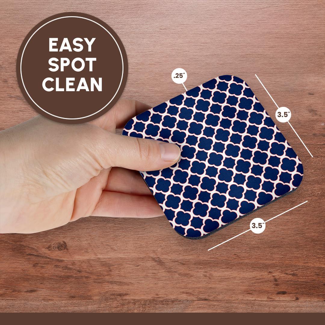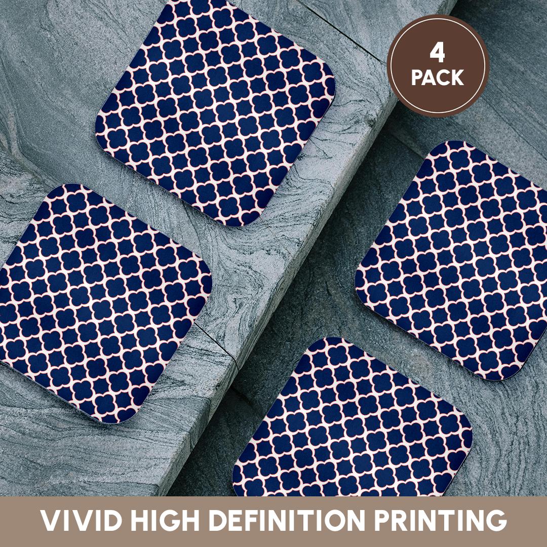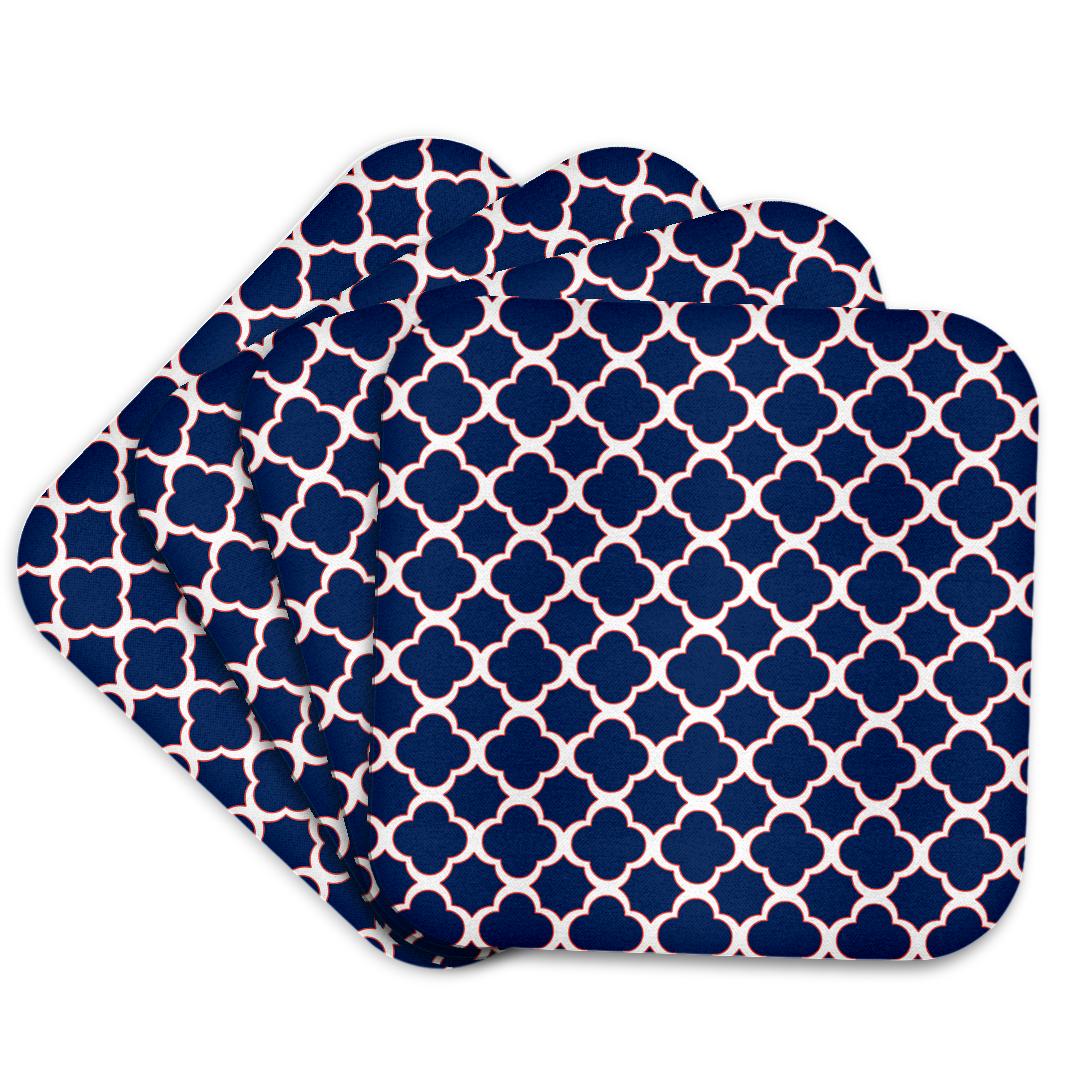 3dRose Janna Salak Designs Contemporary Patterns - Quatrefoil Pattern Navy Blue and White with Red Accent - Coasters (CST_165919)