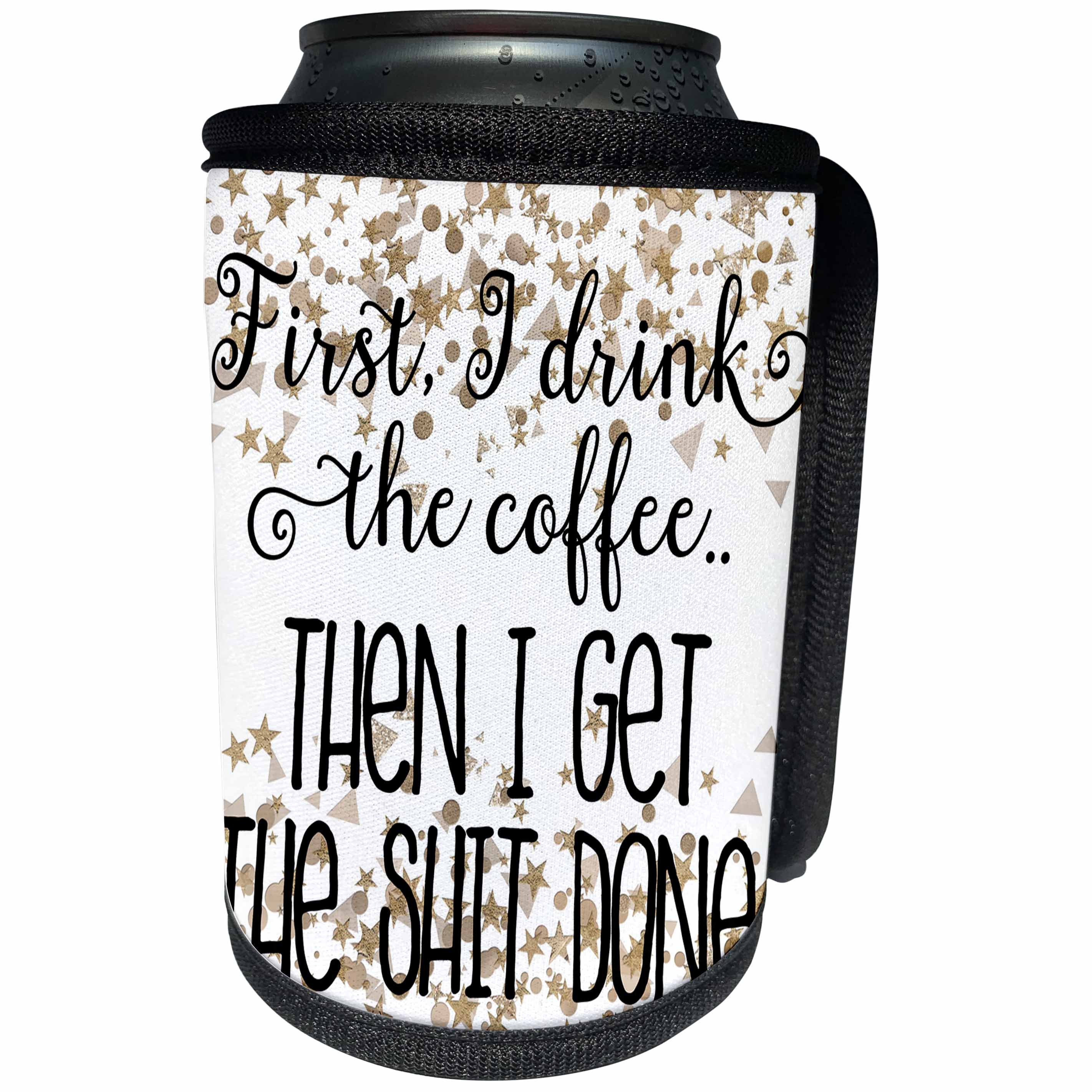 3dRose Lenas Photos - Funny Quotes - First I Drink the Coffee Then I Get the Shit Done - Can Cooler Bottle Wrap (cc_301431)