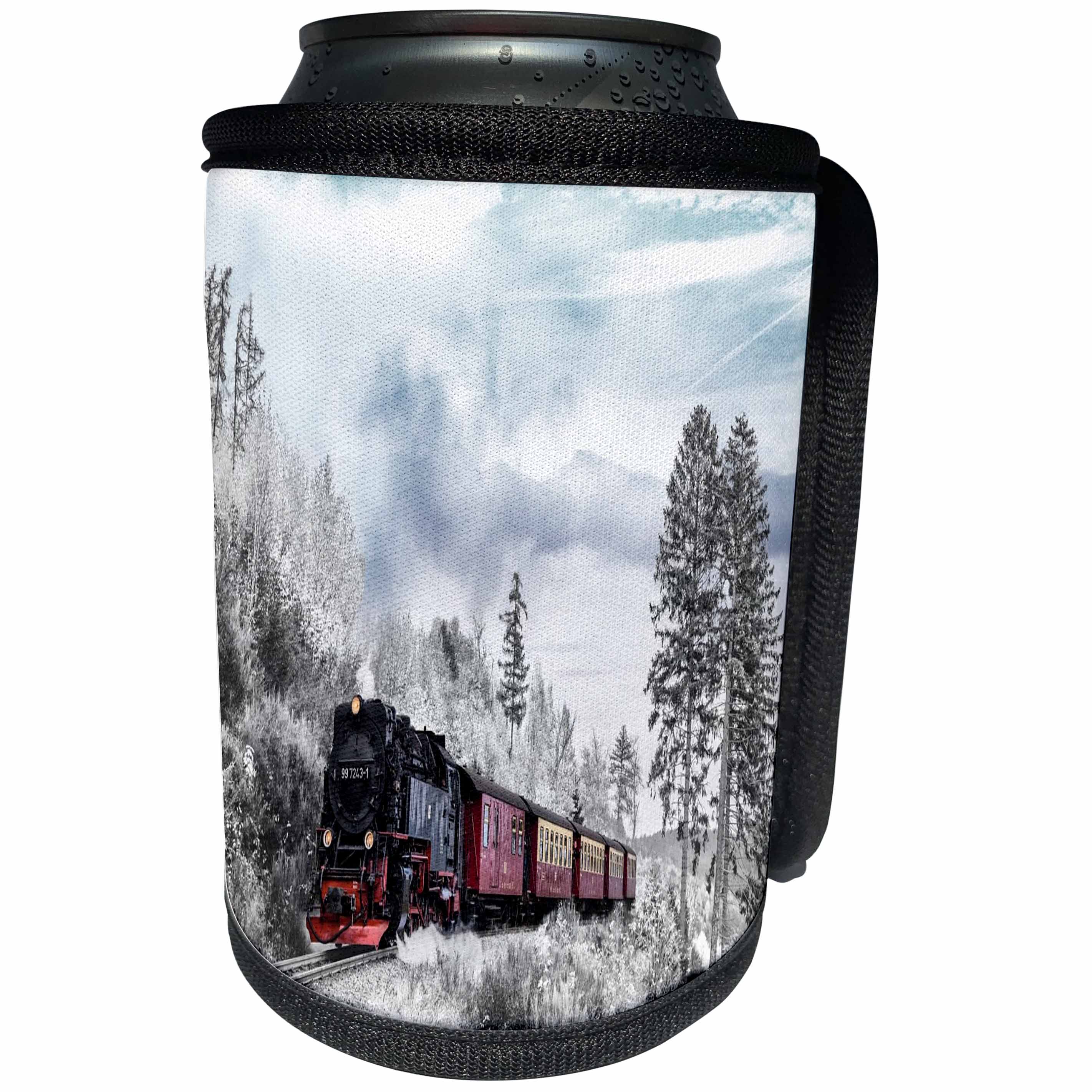 3dRose lens Art by Florene - Winter Landscapes - Image of A Steam locomotive Travels Thru Wintery Snow - Can Cooler Bottle Wrap (cc_300658)