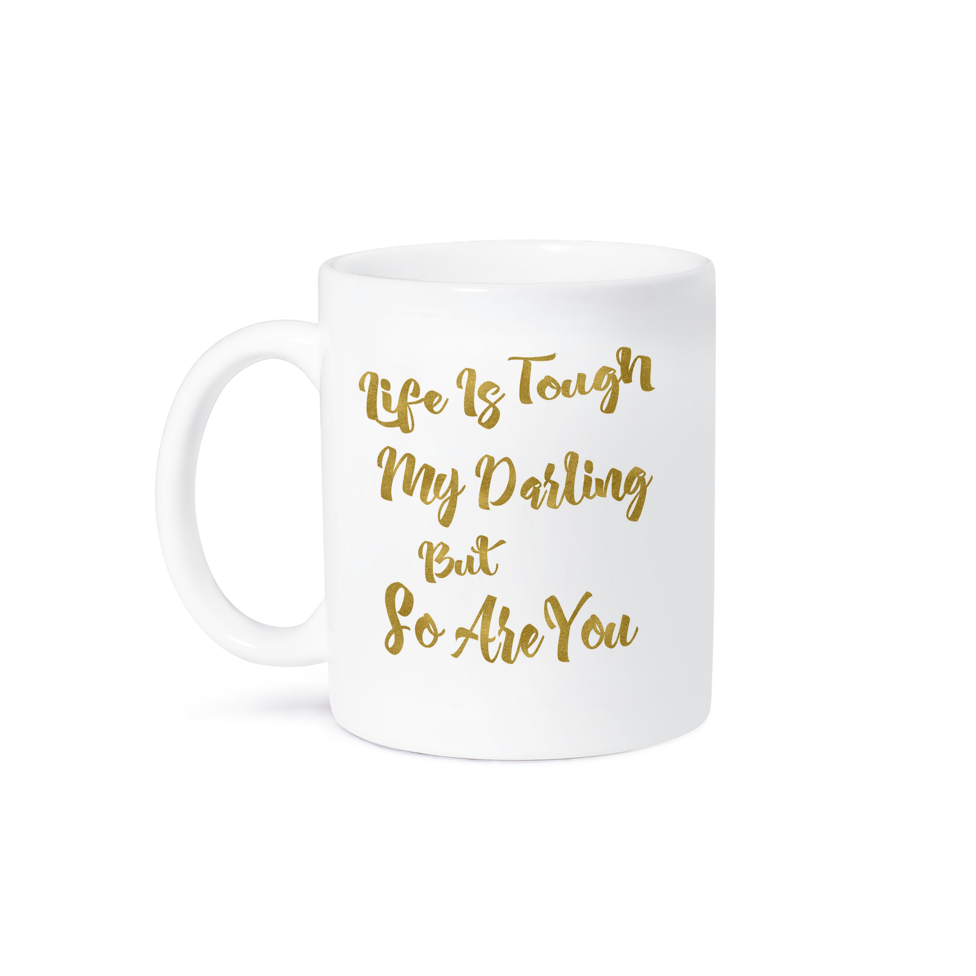 3dRose Life Is Tough My Darling But So Are You Quote In Digital Faux Gold - Mugs (mug_263640)