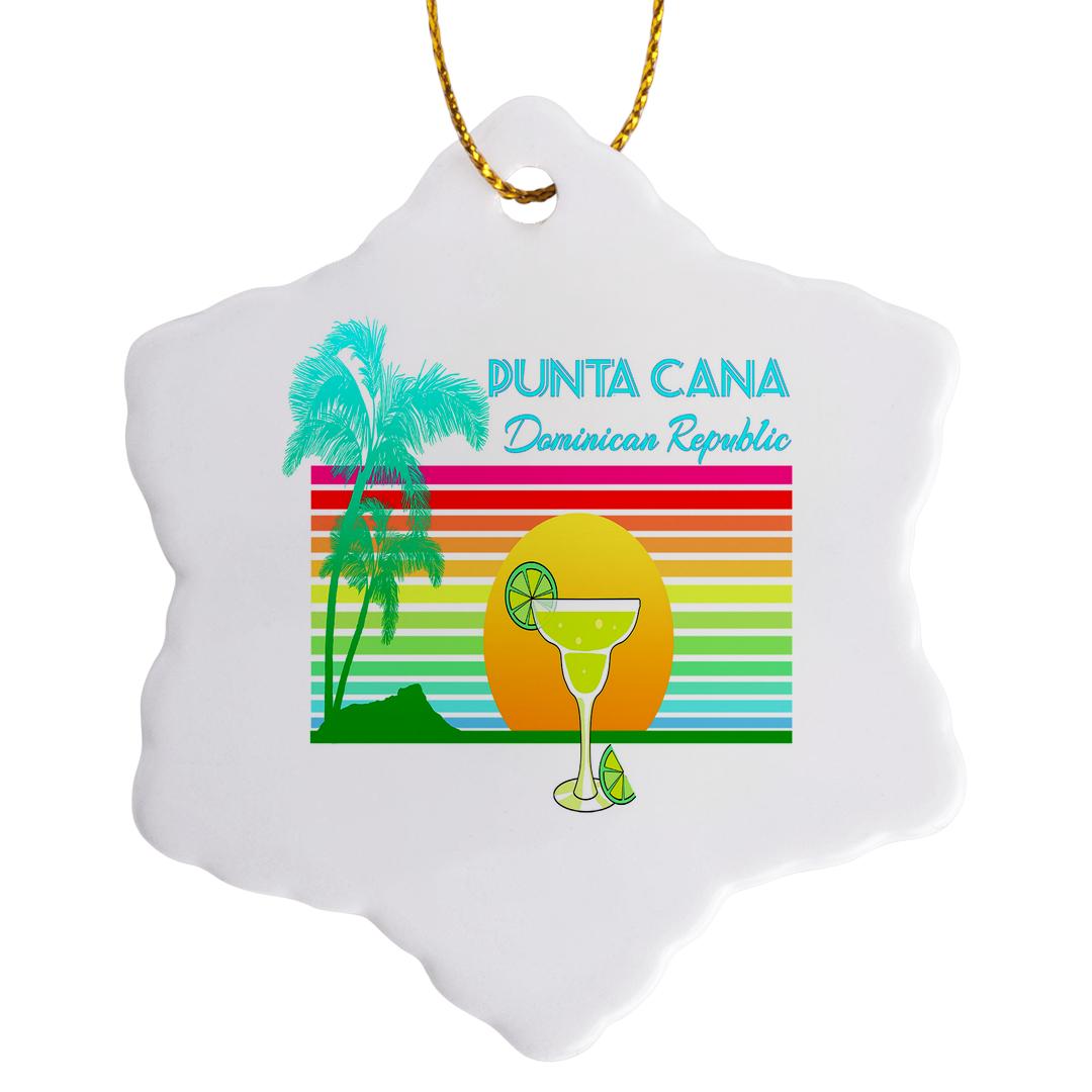 3dRose Macdonald Creative Studios – Caribbean - Retro Punta Cana Dominican Republic Tropical Design with a Margarita. - Ornaments (ORN_291842)