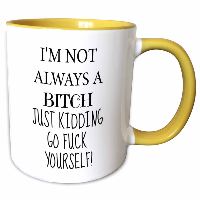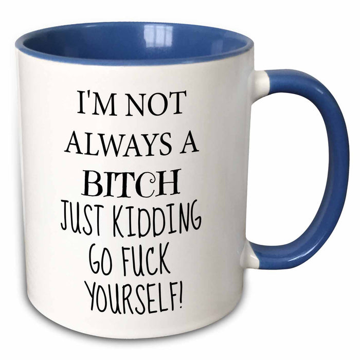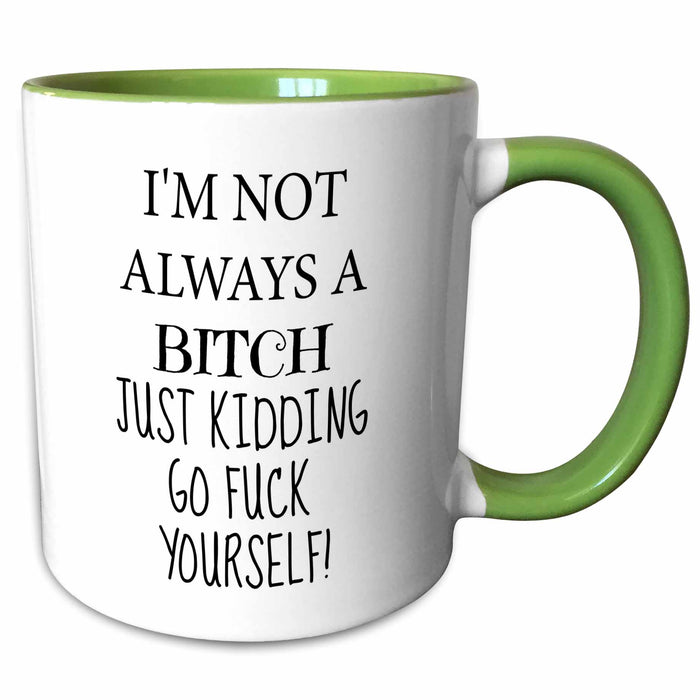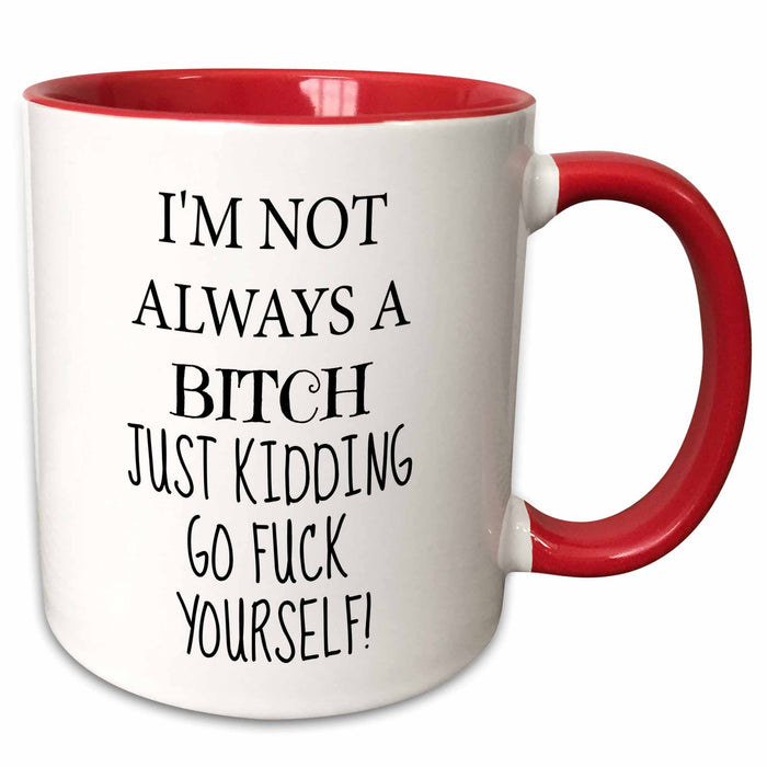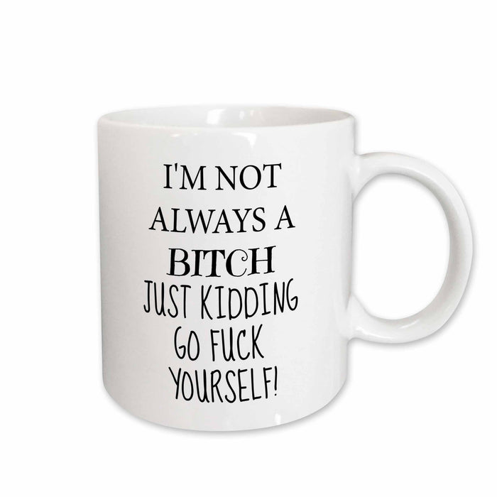 Im not always a bitch, just kidding, go fuck yourself Mug is available in both 11 oz and 15 oz. Why drink out of an ordinary mug when a custom printed mug is so much cooler? This ceramic mug is lead free, microwave safe. Image is printed on both sides. Hand washing is recommended.