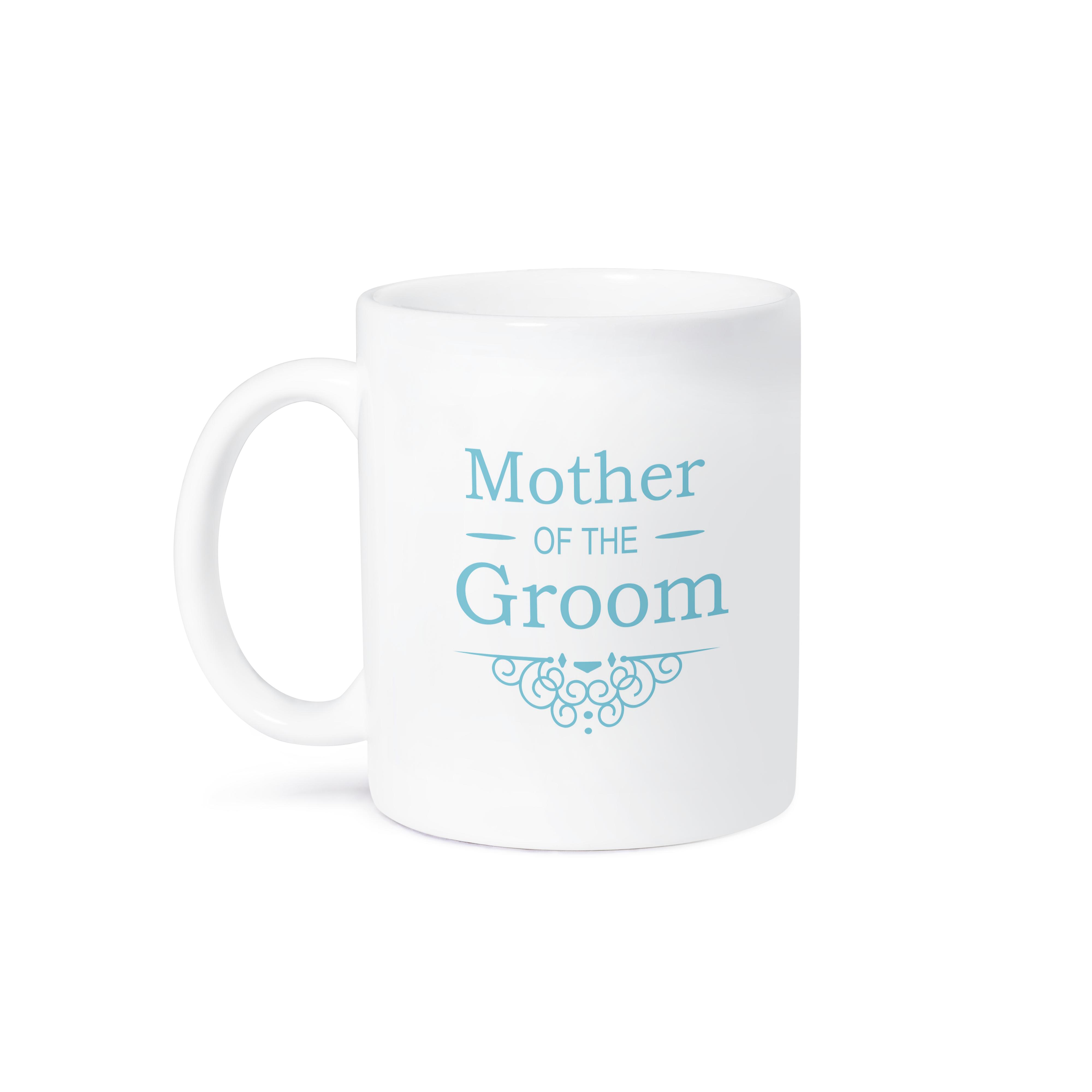 Mother of the Groom in blue - Wedding - part of matching marriage party ceremony set - fancy swirls Mug is available in both 11 oz and 15 oz. Why drink out of an ordinary mug when a custom printed mug is so much cooler? This ceramic mug is lead free, microwave safe. Image is printed on both sides. Hand washing is recommended.