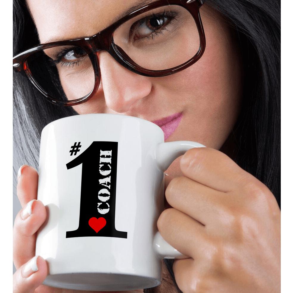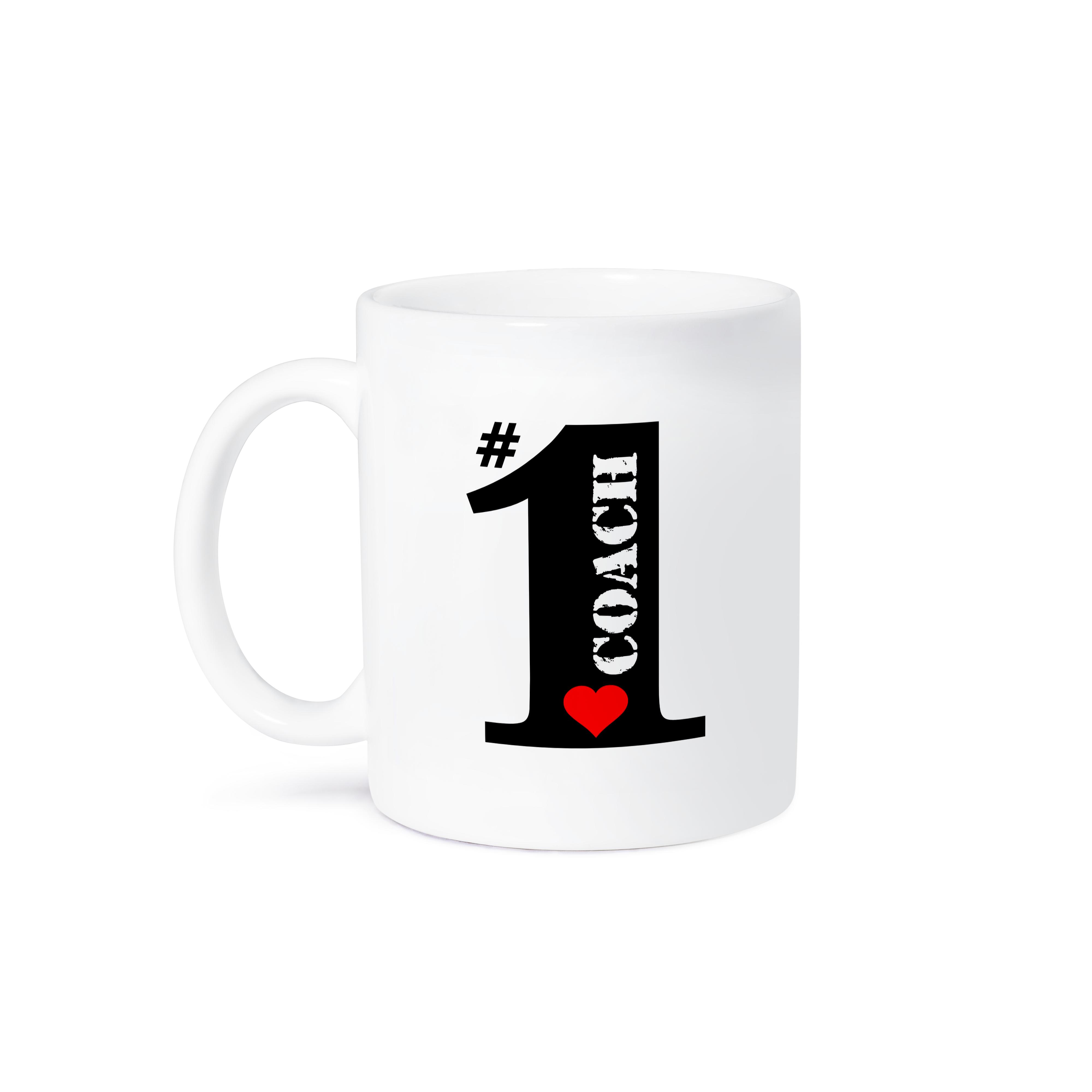 Number One Coach- Big Numeral One with Red Heart Mug is available in both 11 oz and 15 oz. Why drink out of an ordinary mug when a custom printed mug is so much cooler? This ceramic mug is lead free, microwave safe. Image is printed on both sides. Hand washing is recommended.