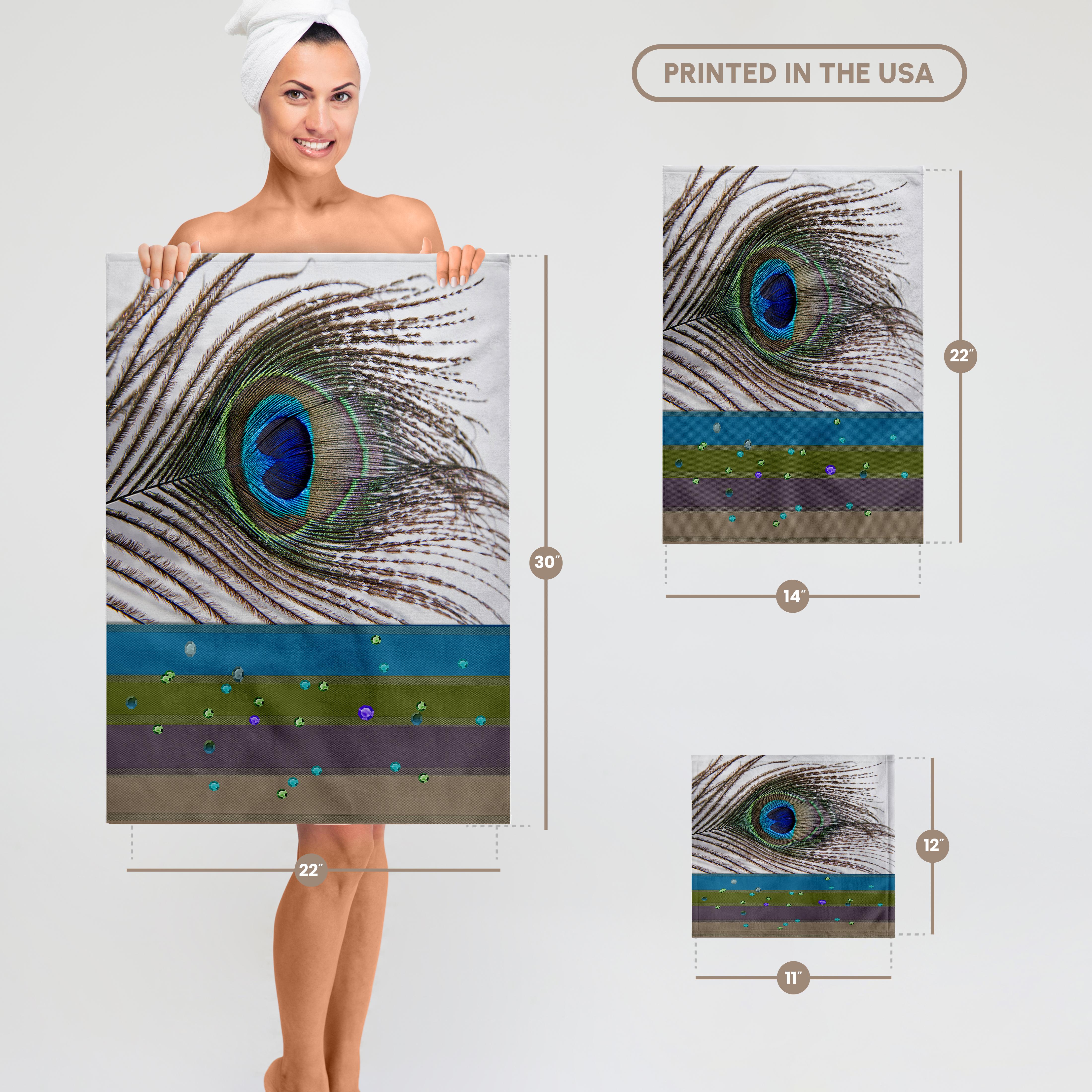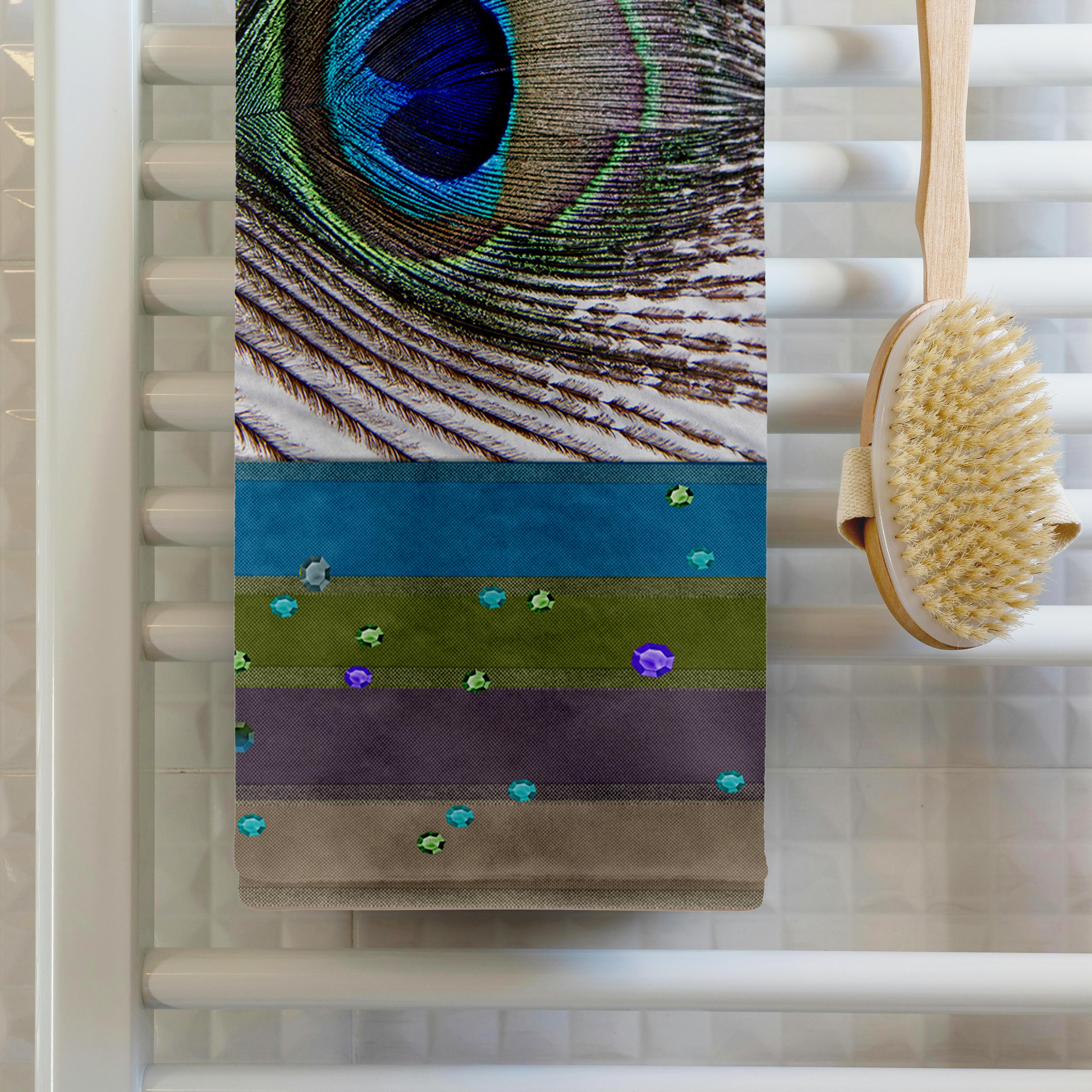 3dRose Peacock Feather with Green, Blue, and Purple Gem Look - Towels (twl-202272)