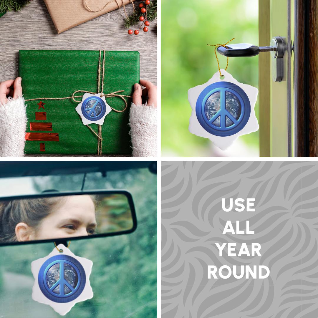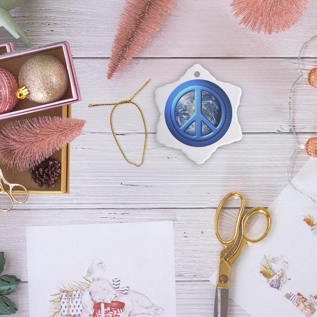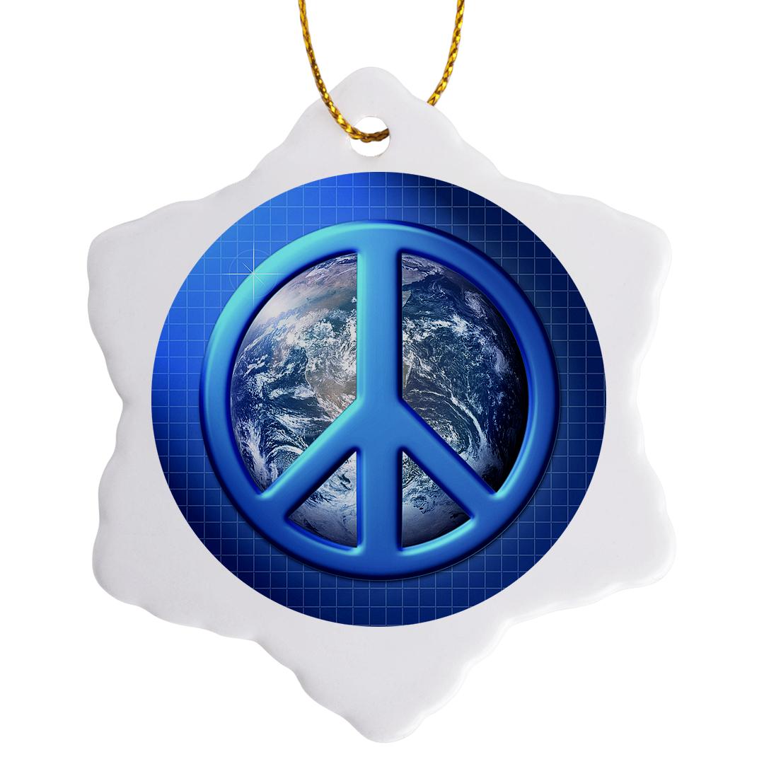 3dRose Perkins Designs Potpourri - Peace On Earth Large Blue Peace Sign Over The Planet Earth - Ornaments (ORN_18146)
