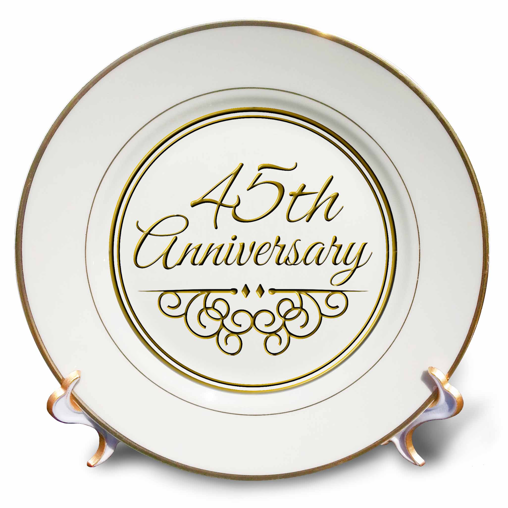 3dRose Plate - 45th Anniversary - Gold Text for Celebrating Wedding Anniversaries - 45 Years Married Together