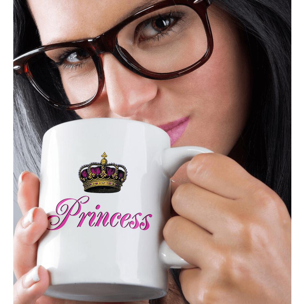 3dRose Princess - girly hot pink cursive script text with fancy royal crown... - Mugs (mug_112873)