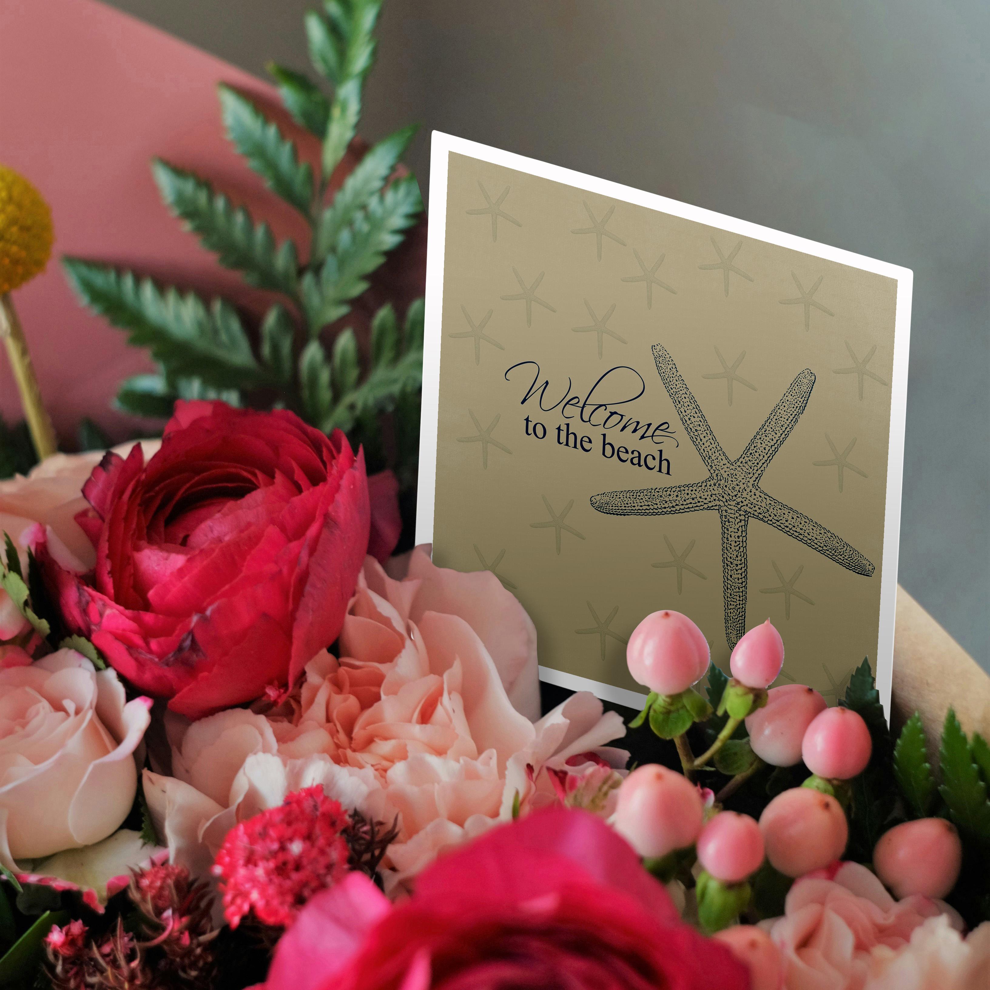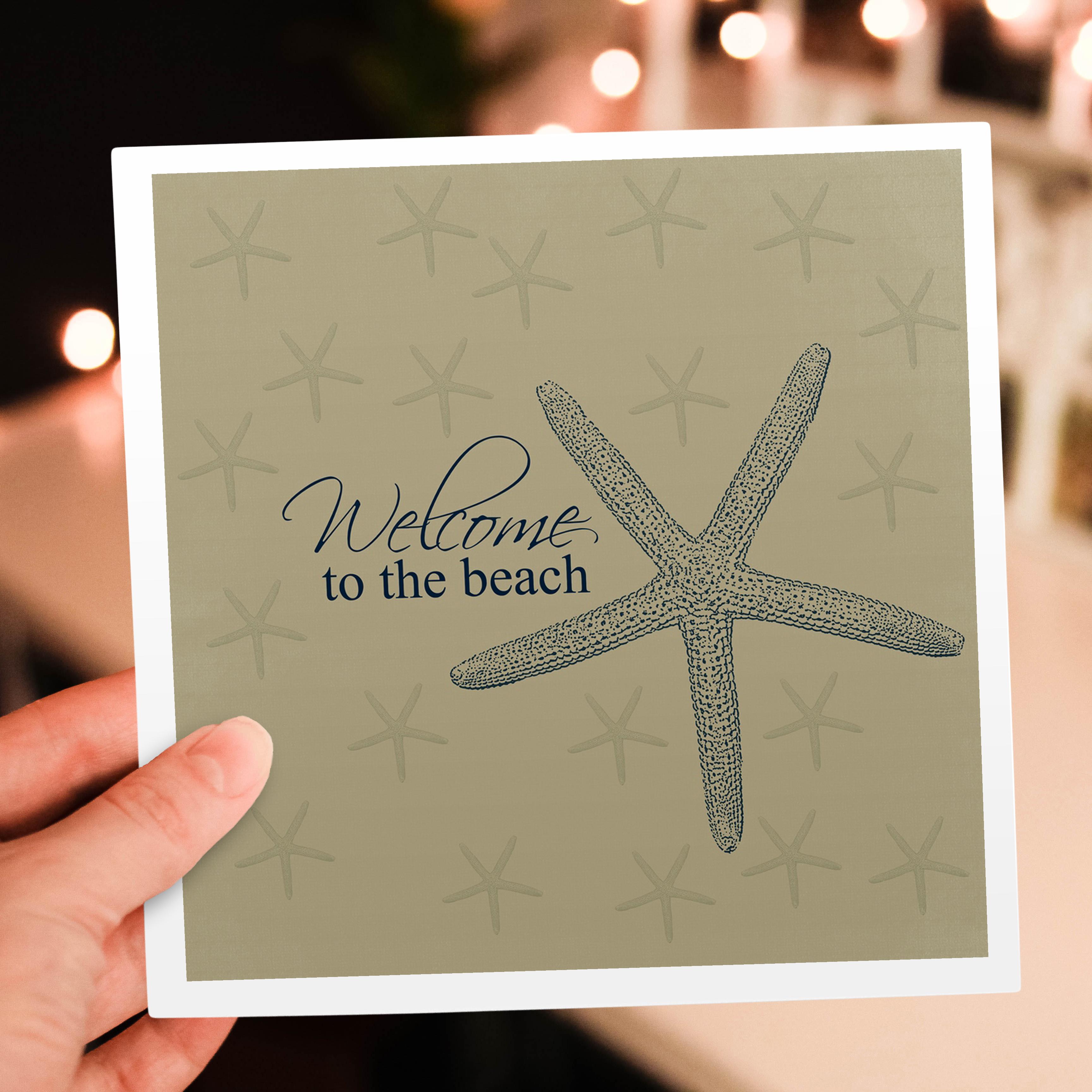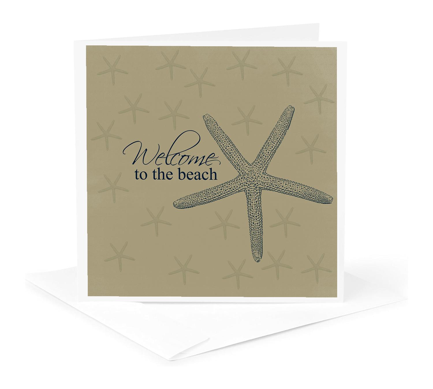 Welcome to the Beach Starfish Greeting Card is a great way to say "thank you" or to acknowledge any occasion. These blank cards are made of heavy-duty card stock that allows for smudge free writing. Cards are creased for easy folding and come with white envelopes. Available individually or in sets of 6 and 12. Made in USA.