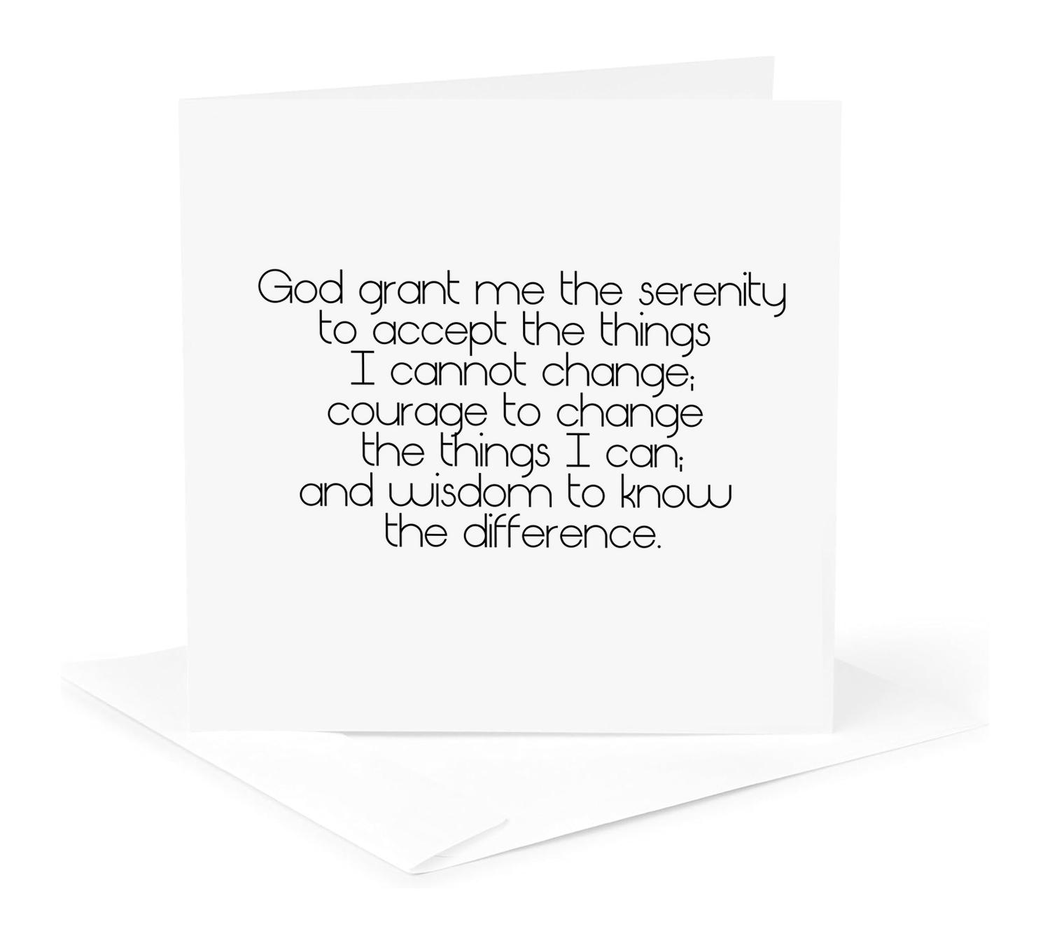 Serenity Prayer Greeting Card is a great way to say "thank you" or to acknowledge any occasion. These blank cards are made of heavy-duty card stock that allows for smudge free writing. Cards are creased for easy folding and come with white envelopes. Available individually or in sets of 6 and 12. Made in USA.