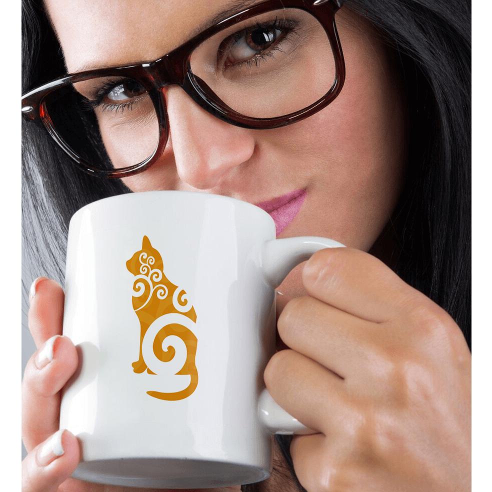 Swirly Cat Silhouette Orange Mug is available in both 11 oz and 15 oz. Why drink out of an ordinary mug when a custom printed mug is so much cooler? This ceramic mug is lead free, microwave safe. Image is printed on both sides. Hand washing is recommended.