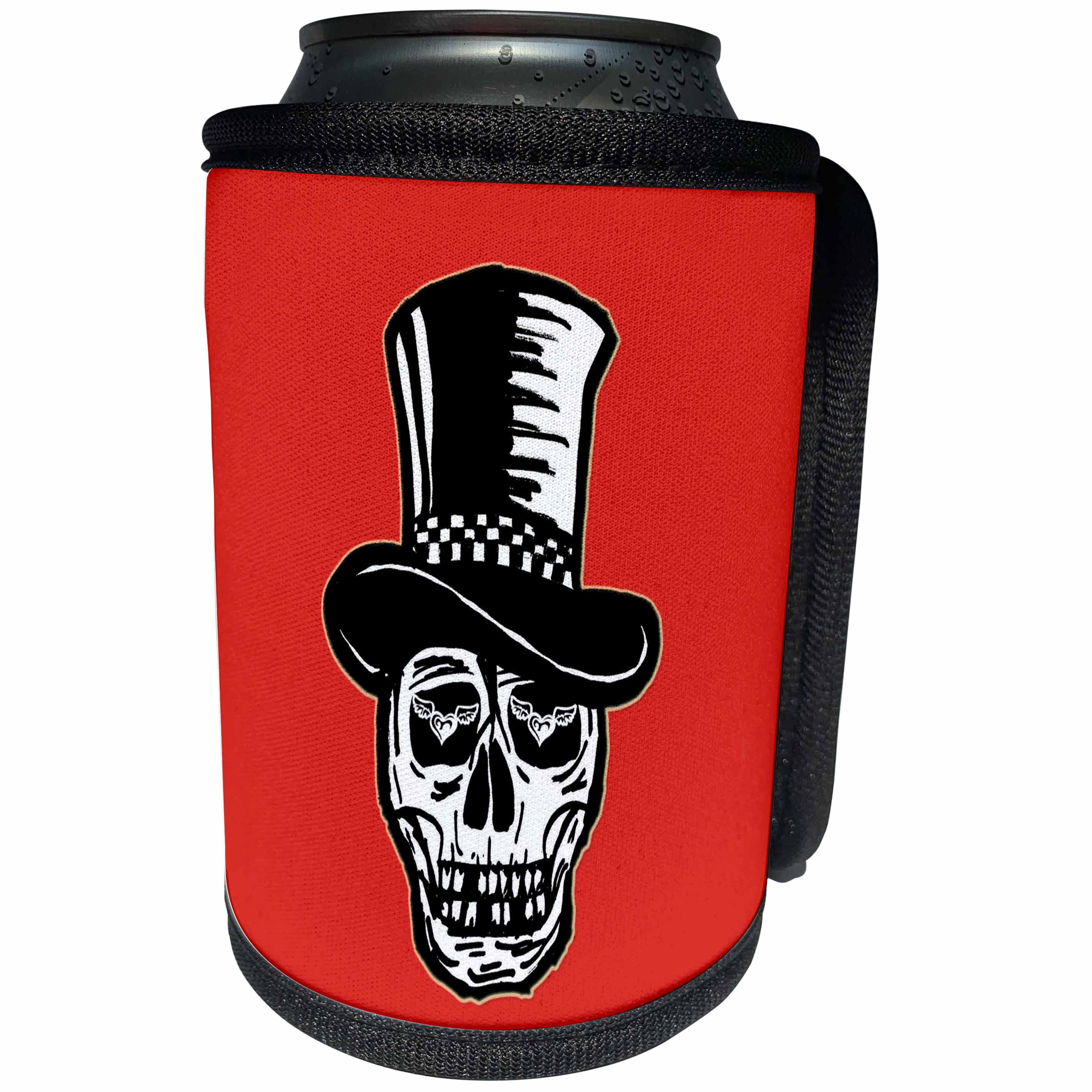 3dRose RinaPiro - Sugar Skull - Day of the Dead. Black and red. Cool image. - Can Cooler Bottle Wrap (cc_224459)