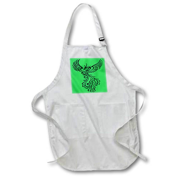 Apron - Rising From The Ashes Phoenix Black Illustration On Green Ilustration - Phoenix